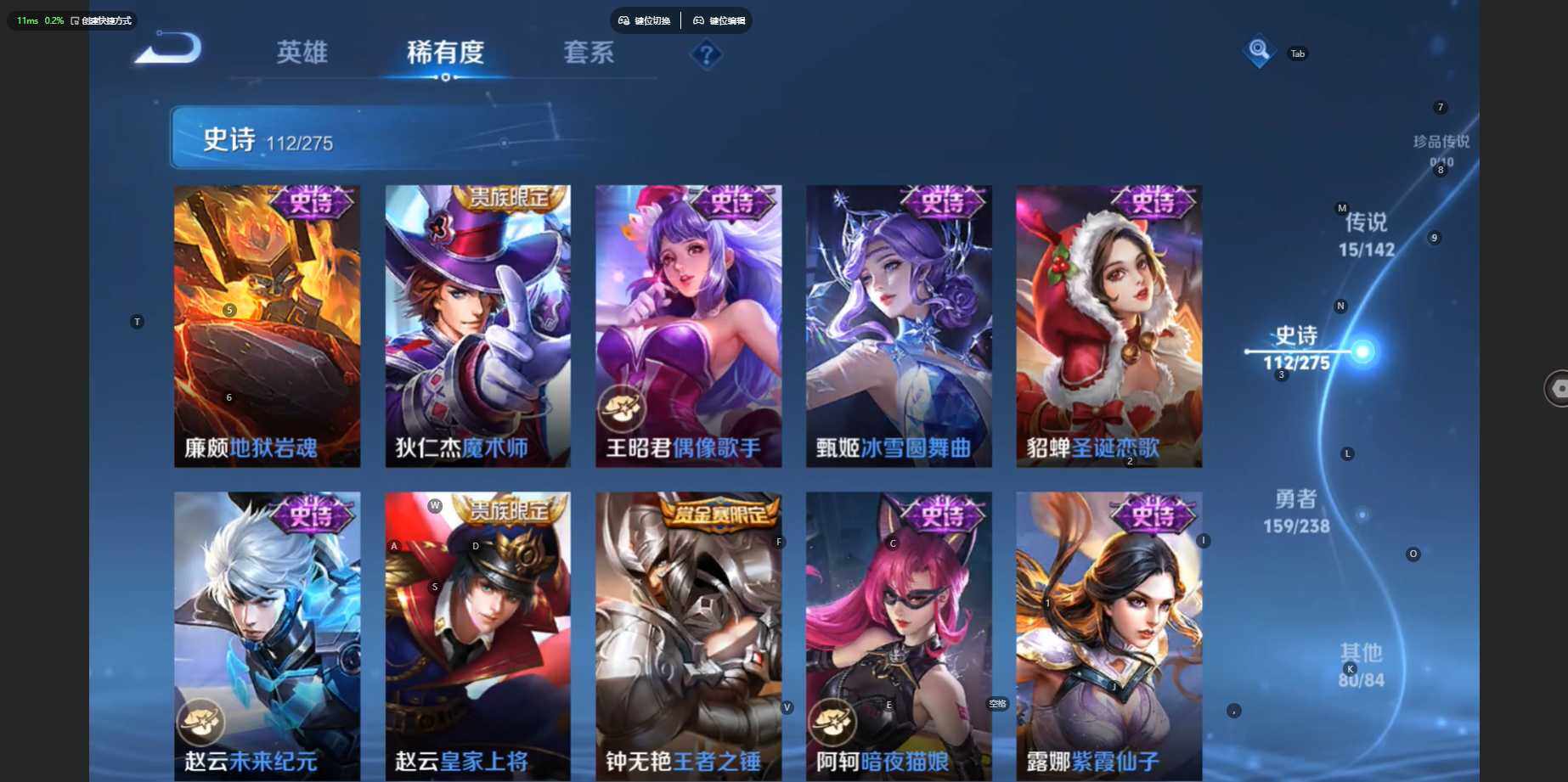 苹果Q-V8-最强王者段位-128英雄-367皮肤-1典藏皮肤-15传说-11