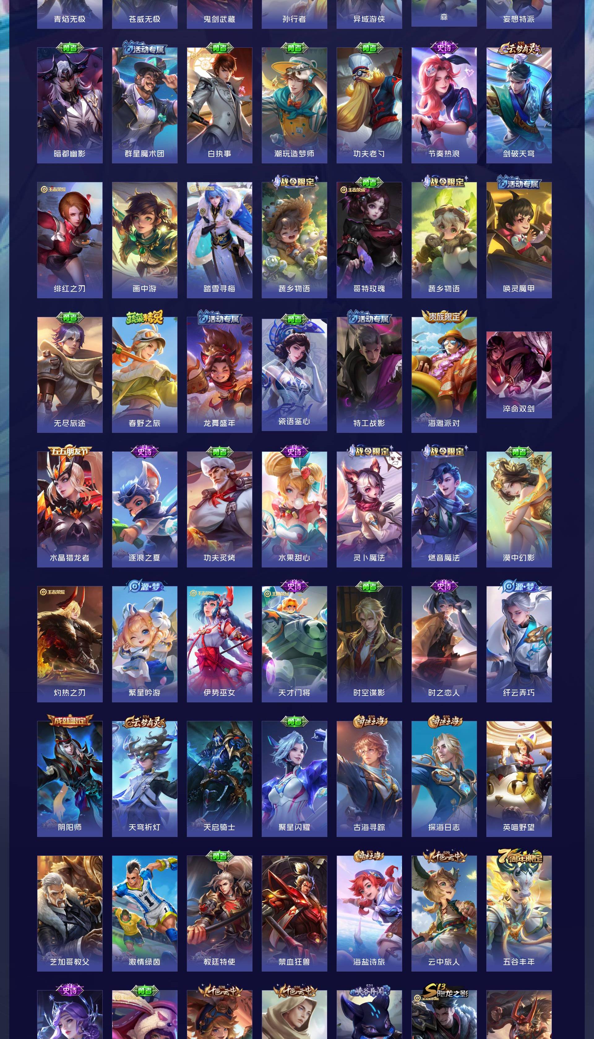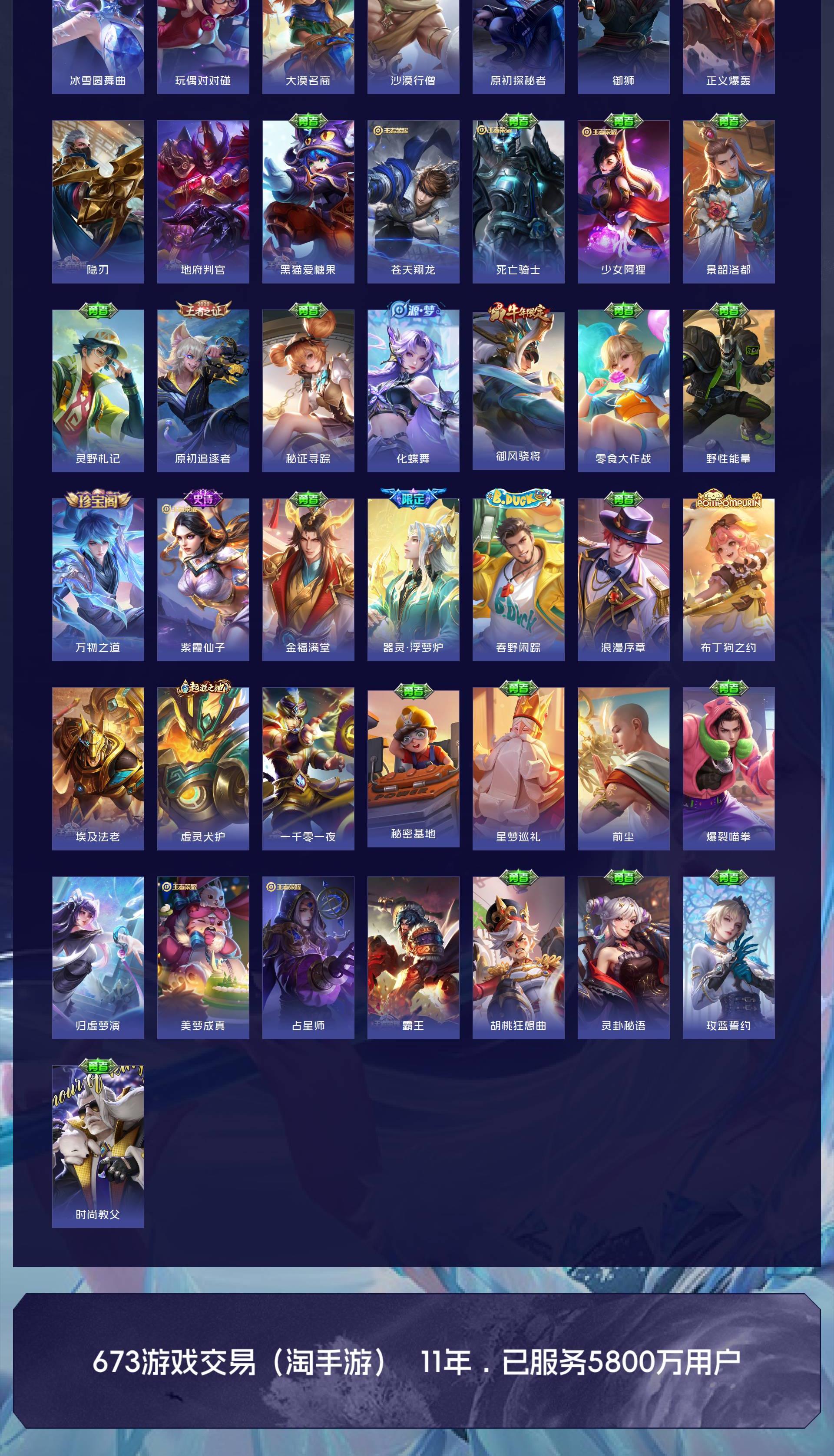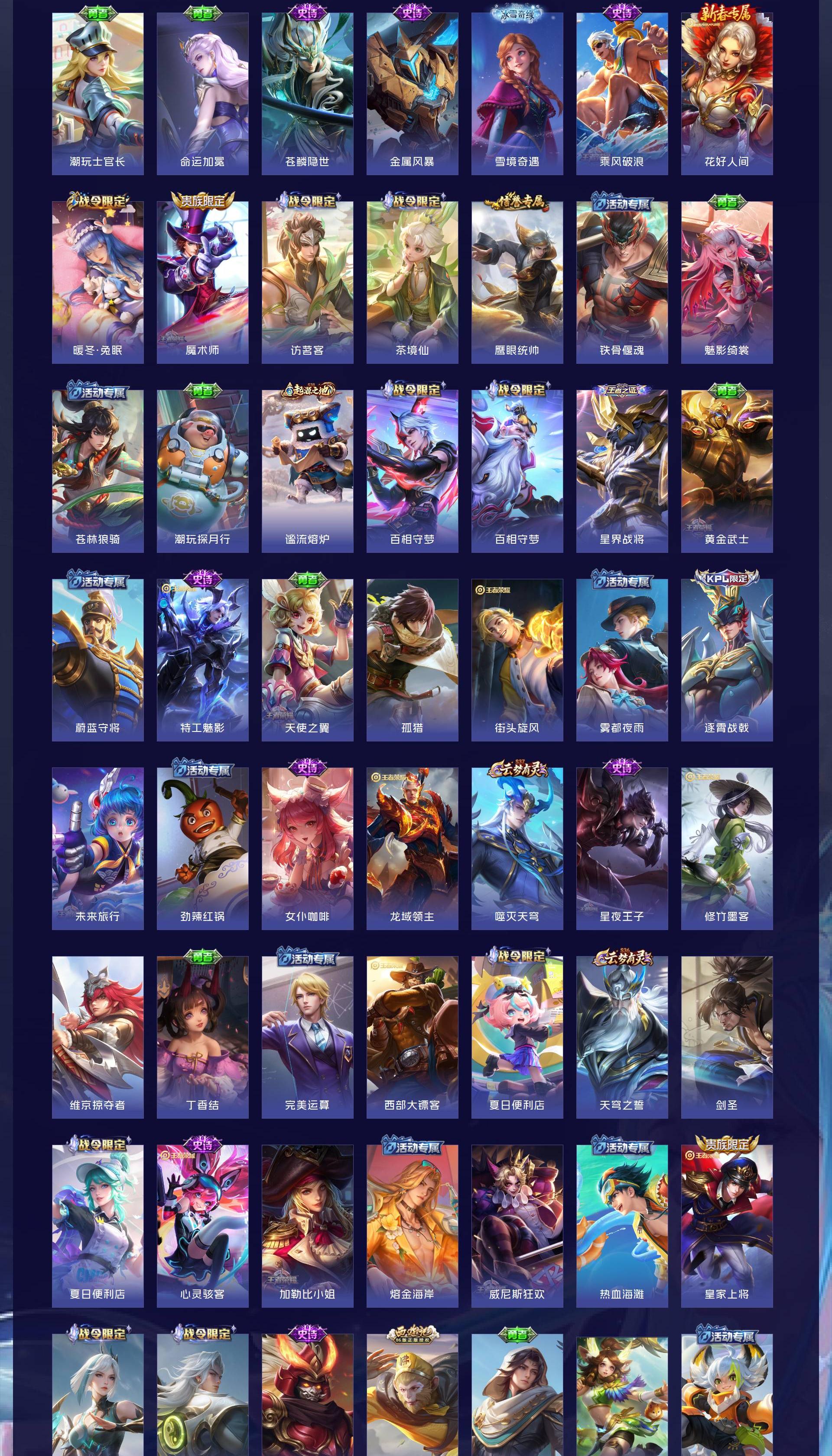 V8 皮肤209 英雄128 非凡王者 荣耀典藏1 无双皮肤1 珍品传说2 星传说1 传说20