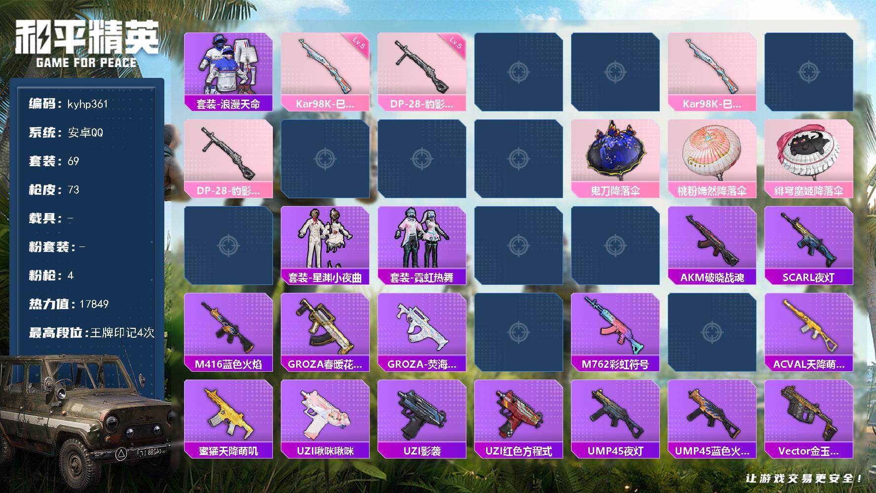 安卓 手Q-0粉装-4特效枪-0载具-2粉色飞行器-1784