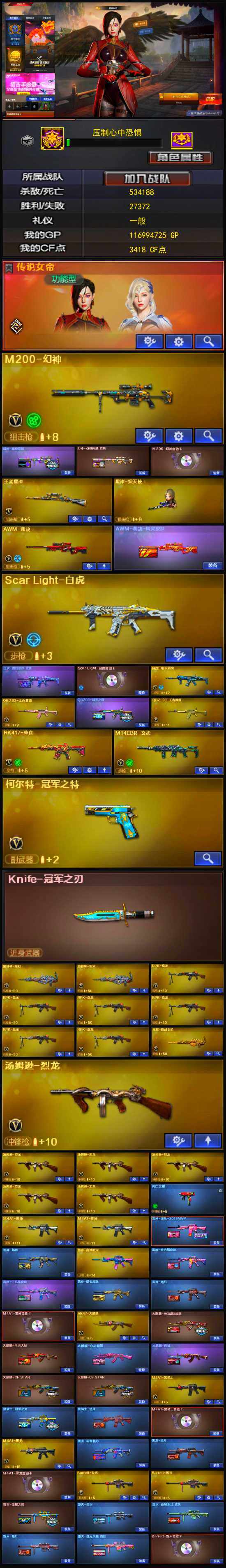 【穿越火线CF-2970】云南一区-84V-19王者-4炫金【传说角色】:传说女帝【热门武器】:QBZ03-金色蔷薇,M14EBR-玄武,Scar Light-白虎,HK417-朱雀,M200-幻神,死亡之眼,荣耀世冠-雷神,白虎-电玩蓝兔,柯尔特-冠军之特,王者炎心,M4A1-黑骑士,汤姆逊-烈龙*6,RPK-盘龙*6,加特林-炼狱*2,沙鹰-修罗*4,Knife-冠军之刃,金刚伞【王者炫金武器】:炫金骑士,炫金毁灭,炫金雷神,炫金武士,王者炎心,王者之力,王者之心,王者霜心,王者玉锋【音效卡