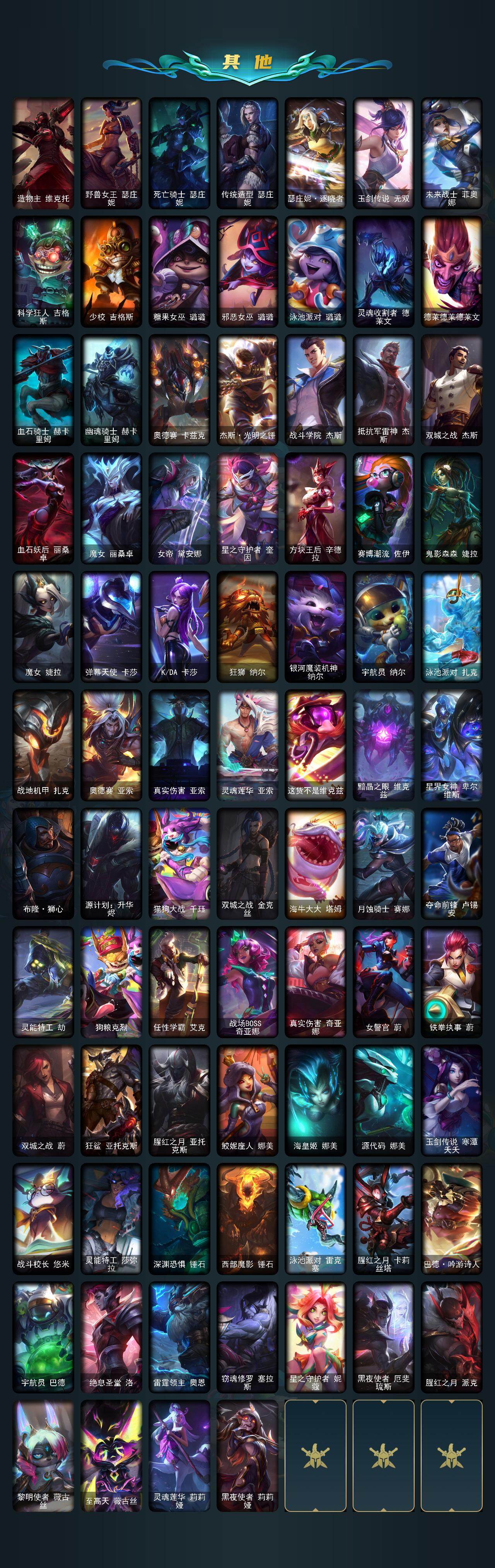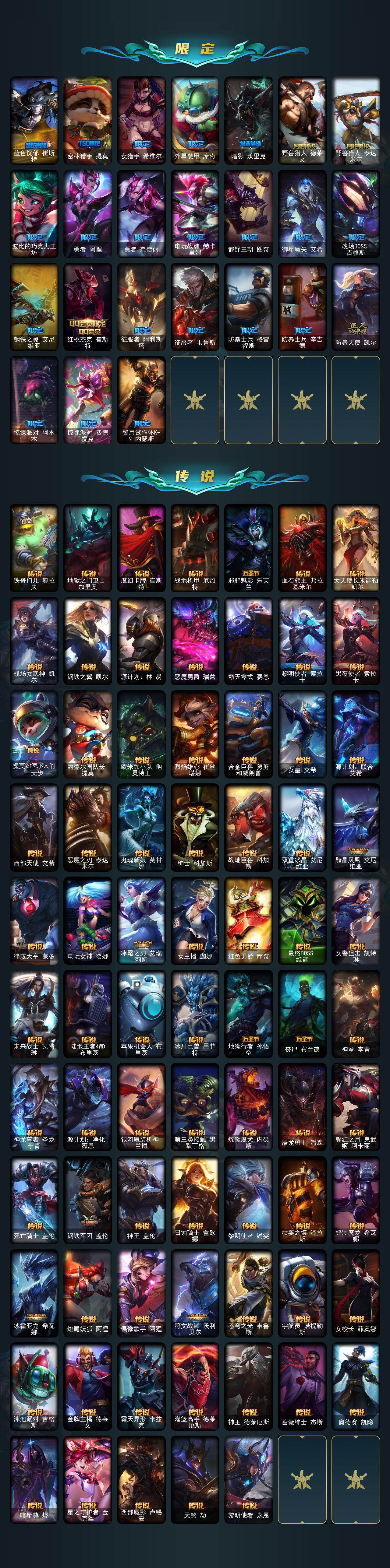 未定级段位-167英雄-878皮肤-300炫彩-5终极-53神话-143限定-75传说-196史诗