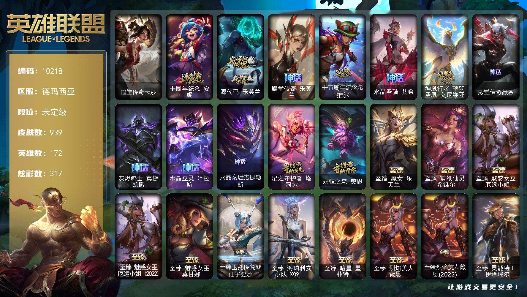 未定级段位-167英雄-878皮肤-300炫彩-5终极-53神话-143限定