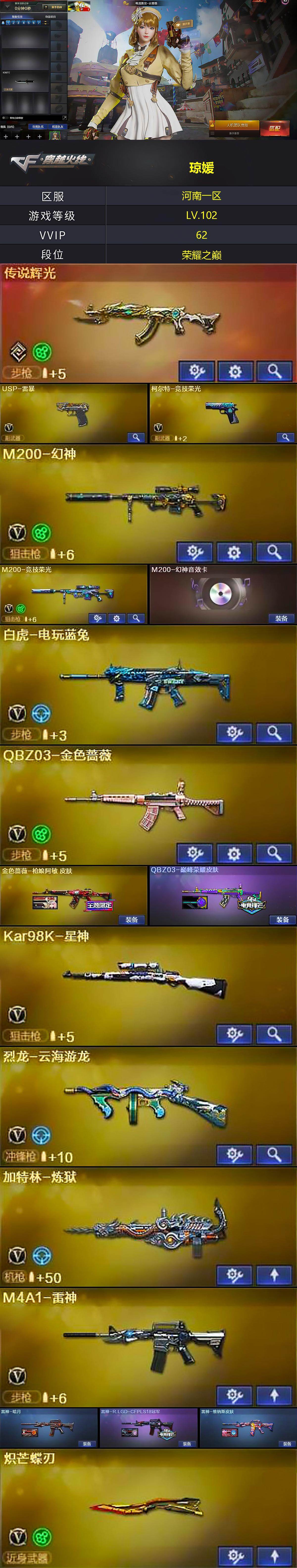 【C5886】河南一区-62V-0王者武器数-2炫金武器数