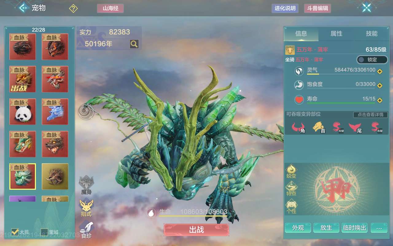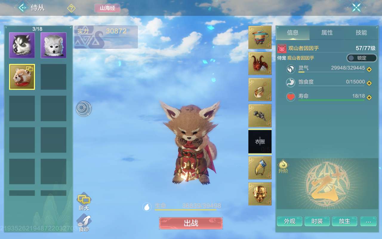 狻猊有皮肤,(帝江 睚眦 蒲牢 狻猊 霸下 鸣蛇 嘲风 熊猫)侍从因呼呼,木元素2100攻击