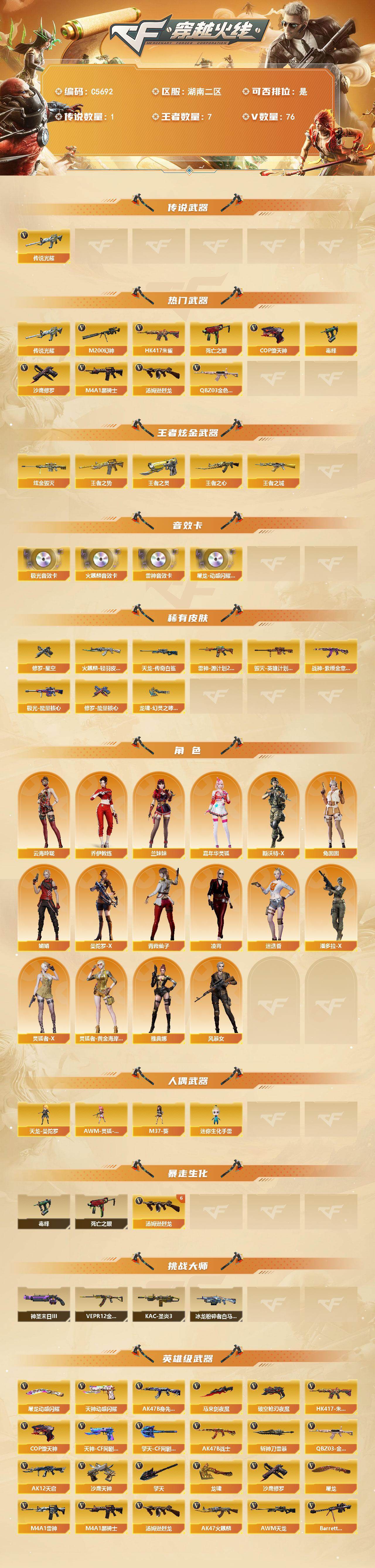 【C5692】湖南二区-79V-7王者武器数-1炫金武器数