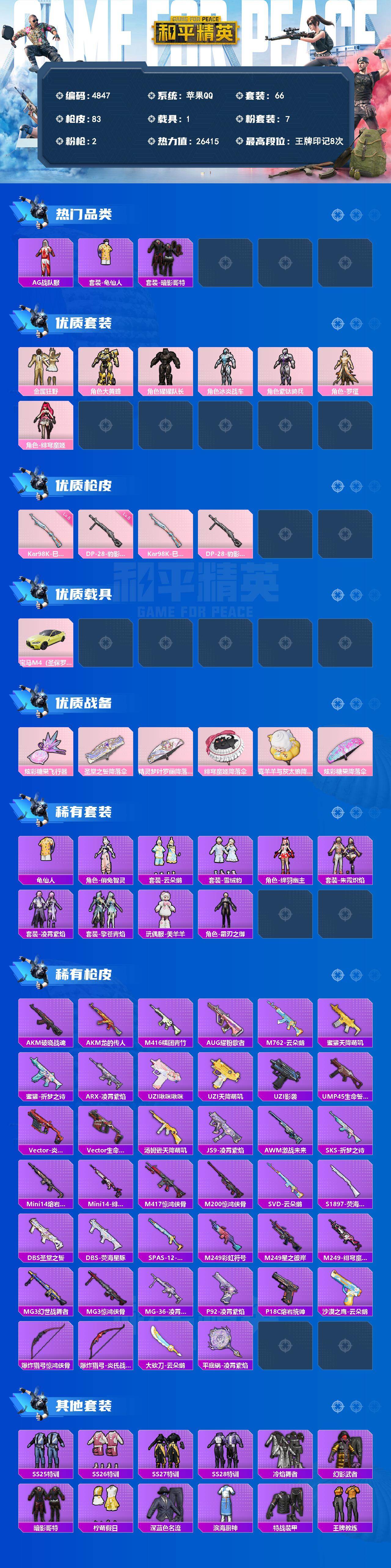 7粉装-2特效枪-1载具-1粉色飞行器-26415热力值-8王牌印记-66套装-83枪皮