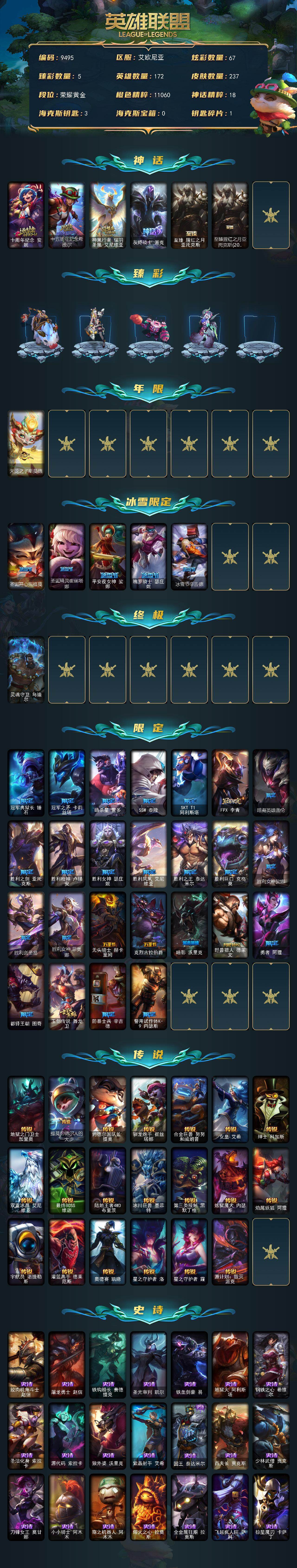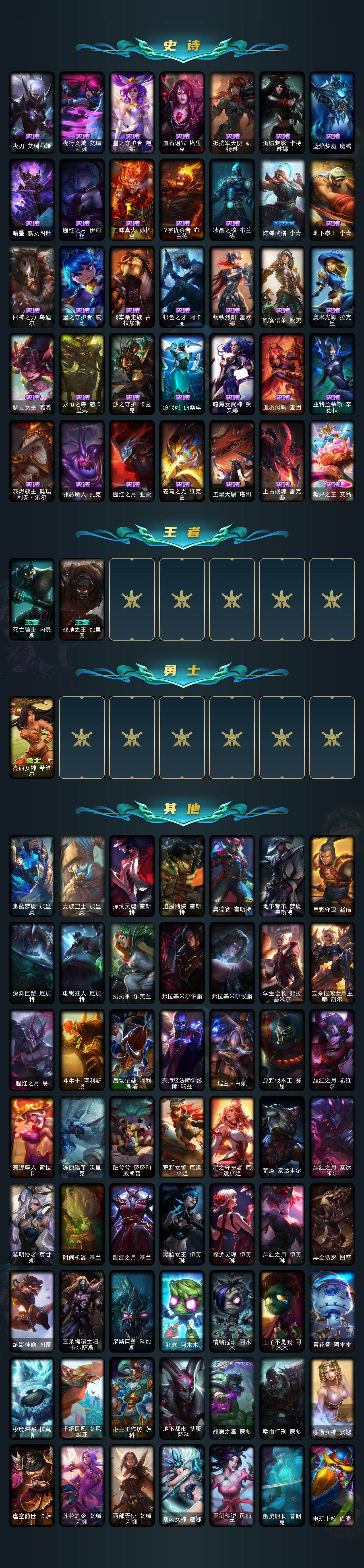 黄金段位-172英雄-237皮肤-67炫彩-1终极-6神话-32限定-20传说-56史诗