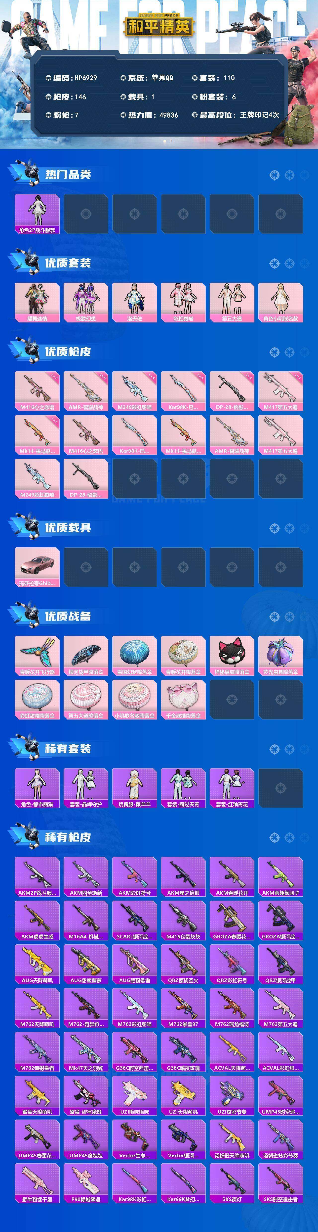 (6粉套7粉枪1载具)2P战斗服款/蝶舞迷情/极致幻想/洛天依/彩虹甜喵/第五大道/小叽联名款/M4心之恋语7级/98K巳巳如意4级/Mk14福马献瑞1级/AMR智耀战神6级/M417第五大道1级/M249彩虹甜喵4级/DP28豹影疾电4级/玛莎拉蒂粉/没战神框/HE6929-1粉色飞行器-49836热力值-4王牌印记-110套装-146枪皮