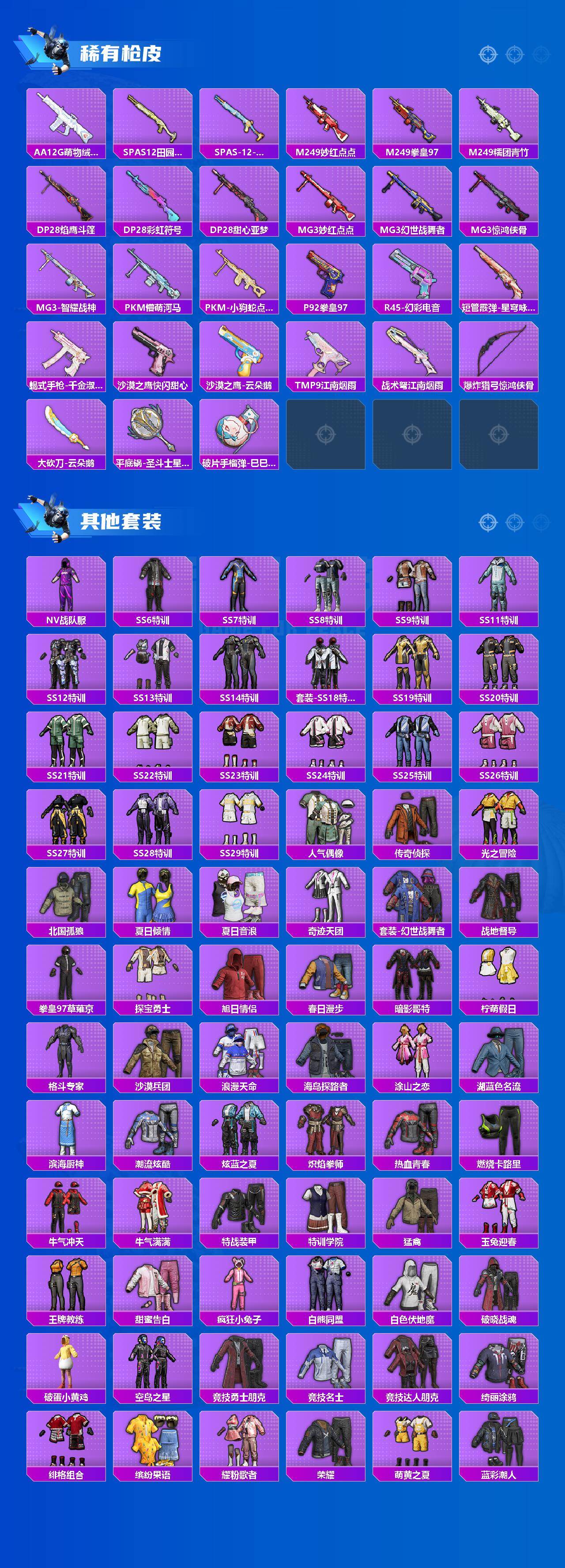 【A8974】苹果【素材号 梦幻火箭 缤纷油彩 深海小丑鱼 暗影哥特 Mark.06 M416-五爪金龙(七级 】 手Q-6粉装-8特效枪-2载具-0粉色飞行器-78997热力值-16王牌印记-188套装-271枪皮