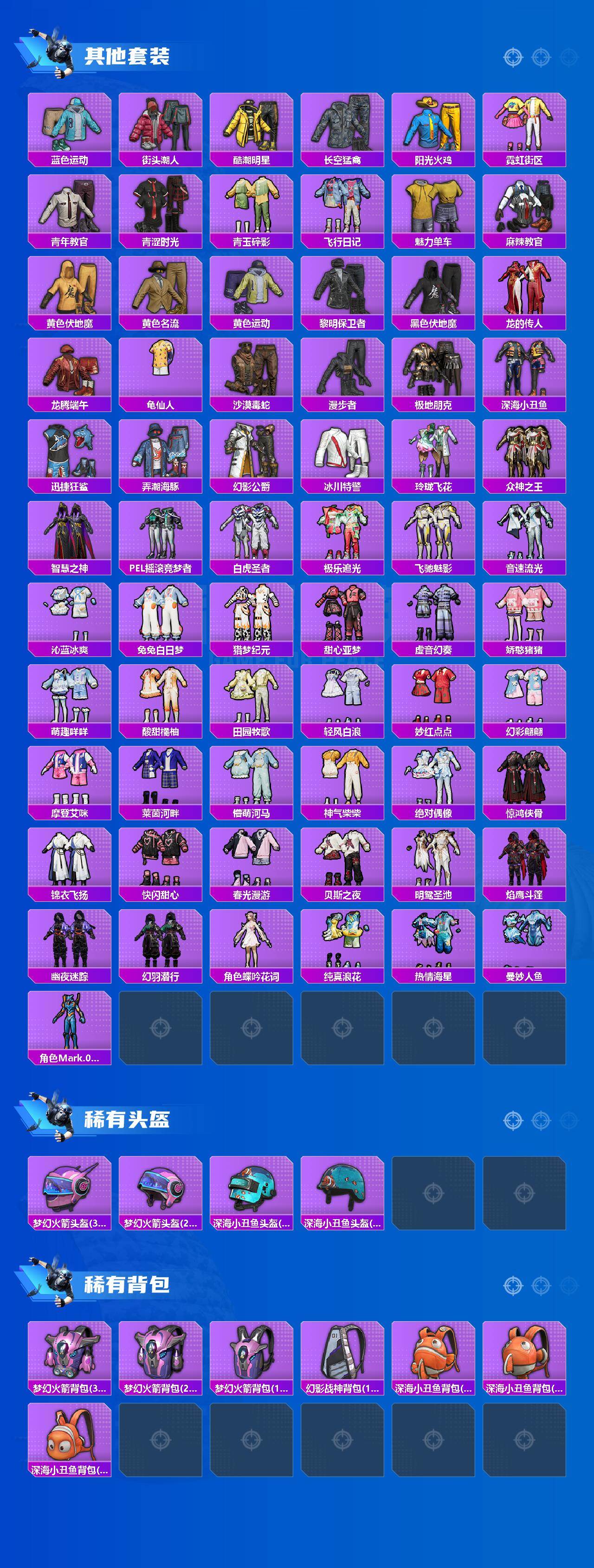 【热门品类】:粉装-梦幻火箭,粉装-缤纷油彩,套装-浪漫天命,套装-深海小丑鱼,套装-小丑鱼,套装-龟仙人,套装-暗影哥特,角色-Mark.06,熔岩游骑兵连帽夹克