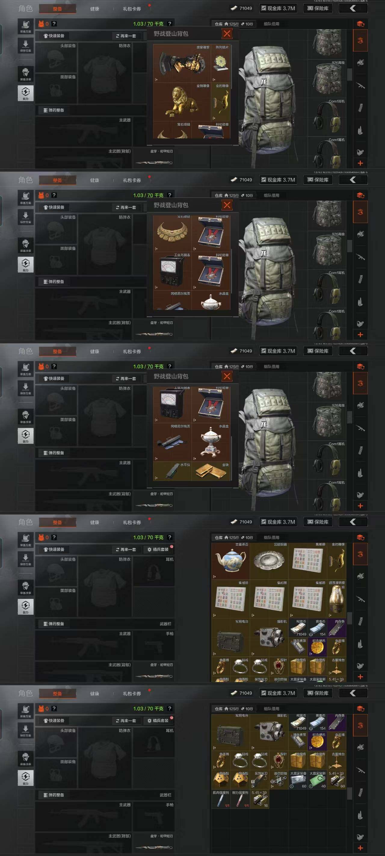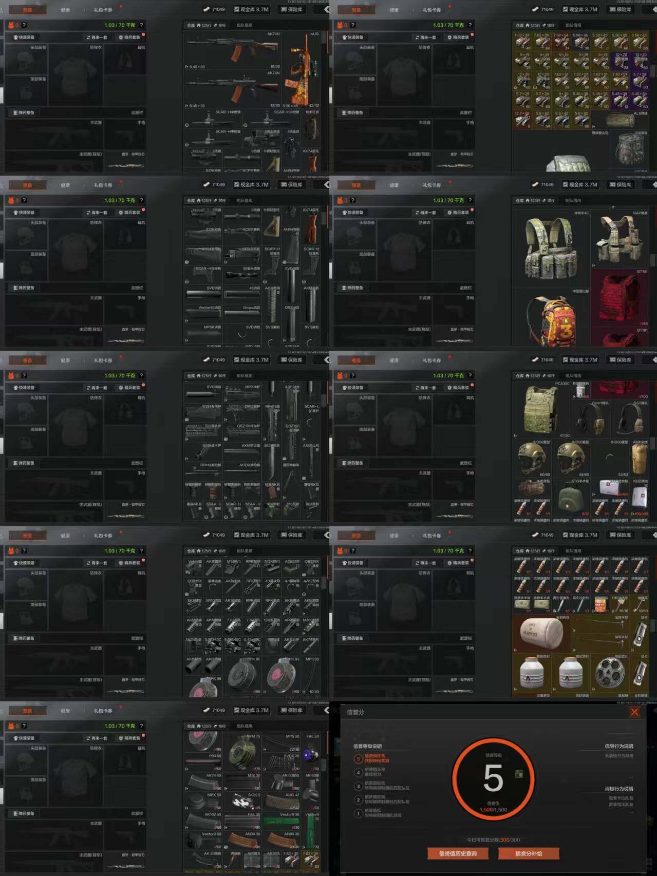 w12,3把刀盘牙彻甲短刃,1黄枪旗帜,仓库10.6M,科恩币3百万,19紫皮枪,多资源等