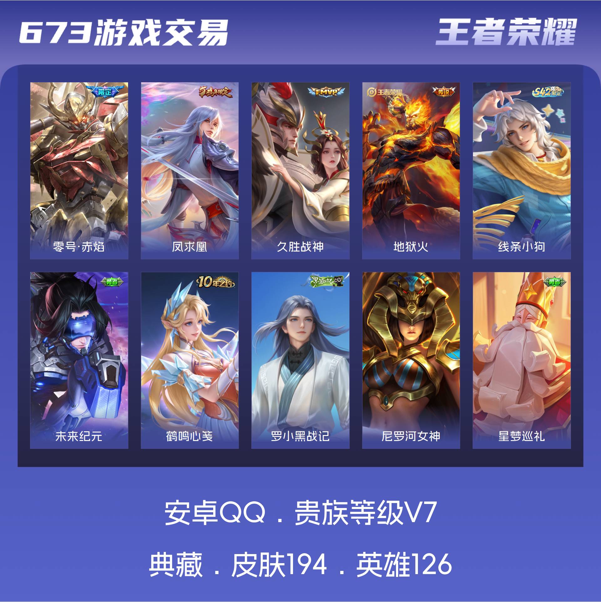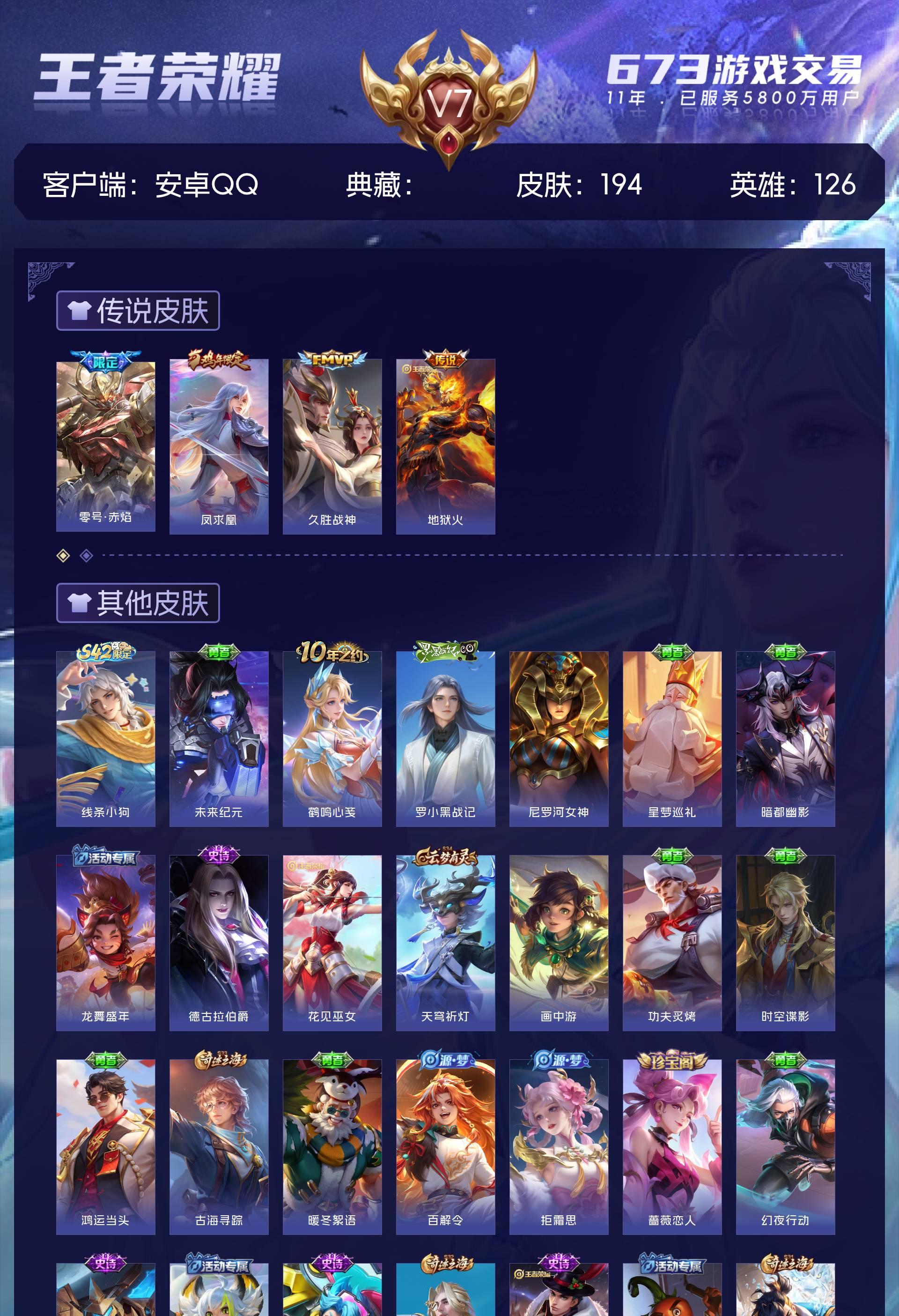 V7 皮肤194 英雄126 荣耀黄金 传说4