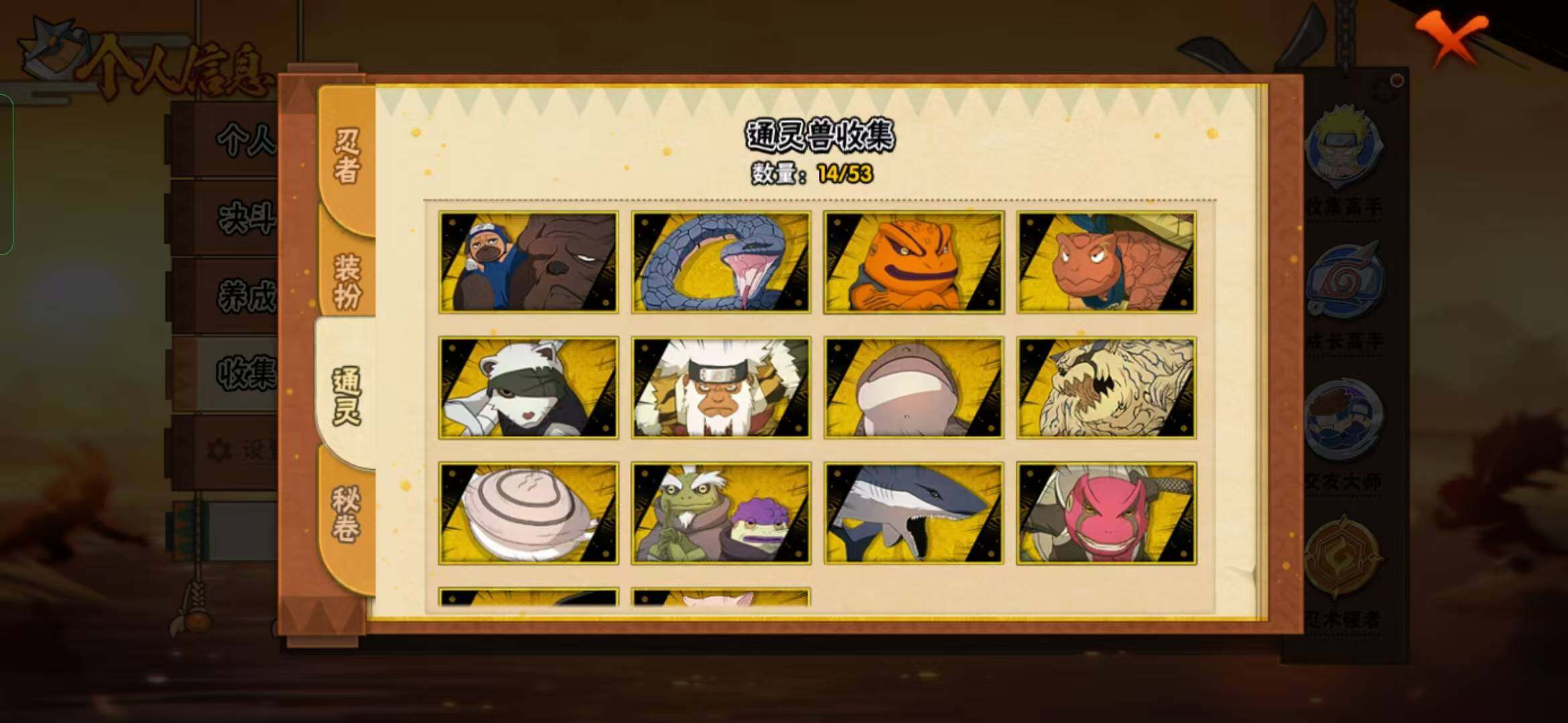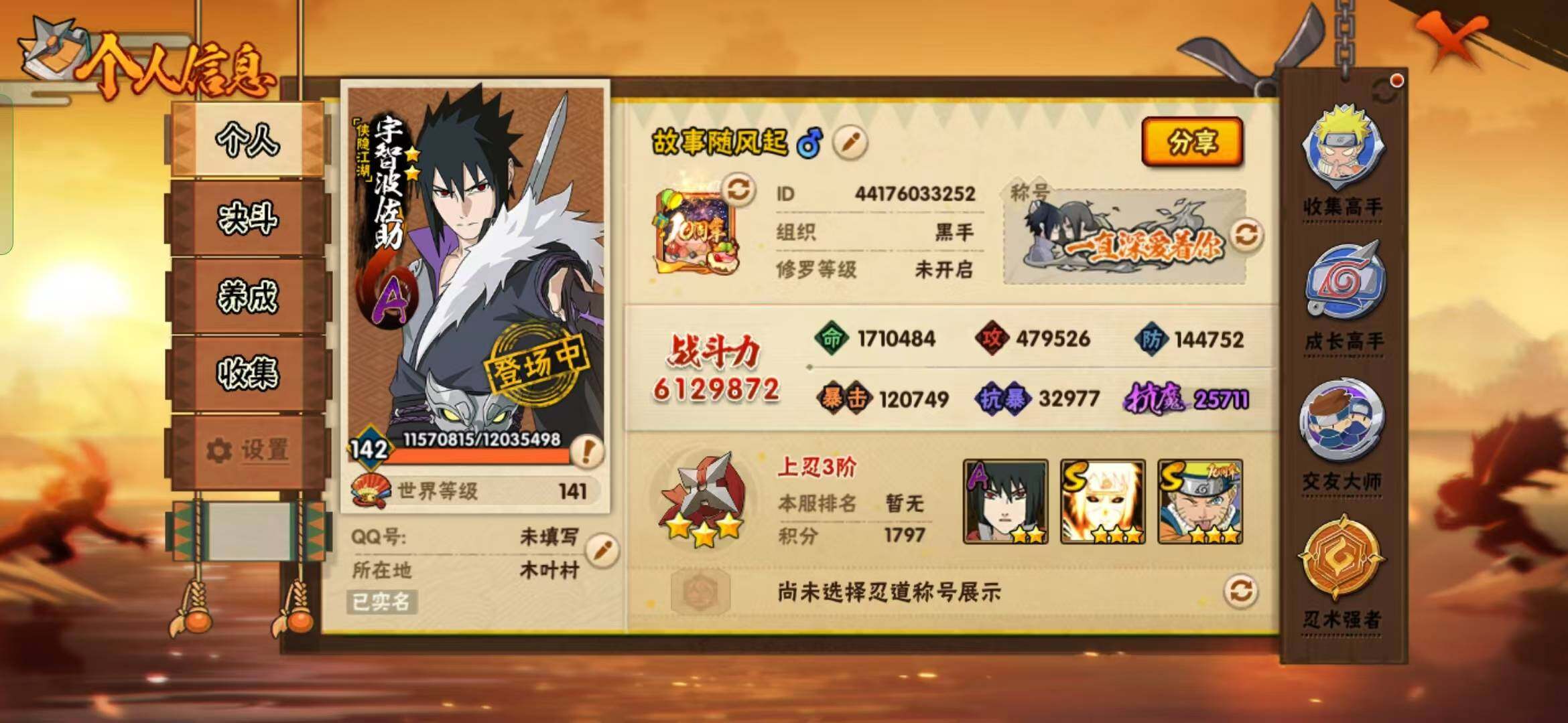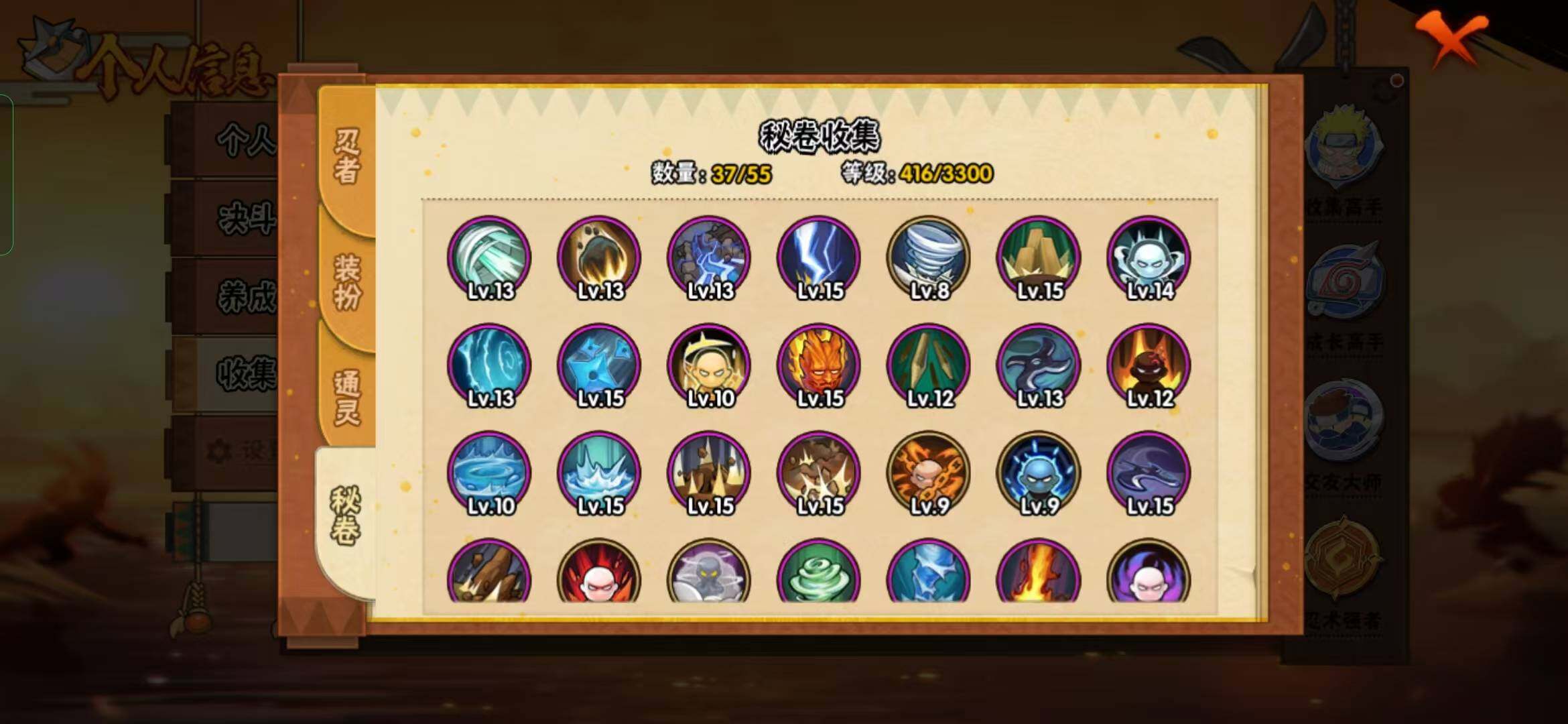 【S级忍者】:宇智波鼬「秽土转生」(3星),宇智波鼬「须佐能乎」(3星),自来也「舞之豪杰」(3星),大蛇丸(3星),迈特凯「死门」(3星),佩恩「天道」(3星),宇智波佐助「永恒万花筒」(3星),波风水门「九喇嘛连结」(3星),漩涡鸣人·宇智波佐助(3星)