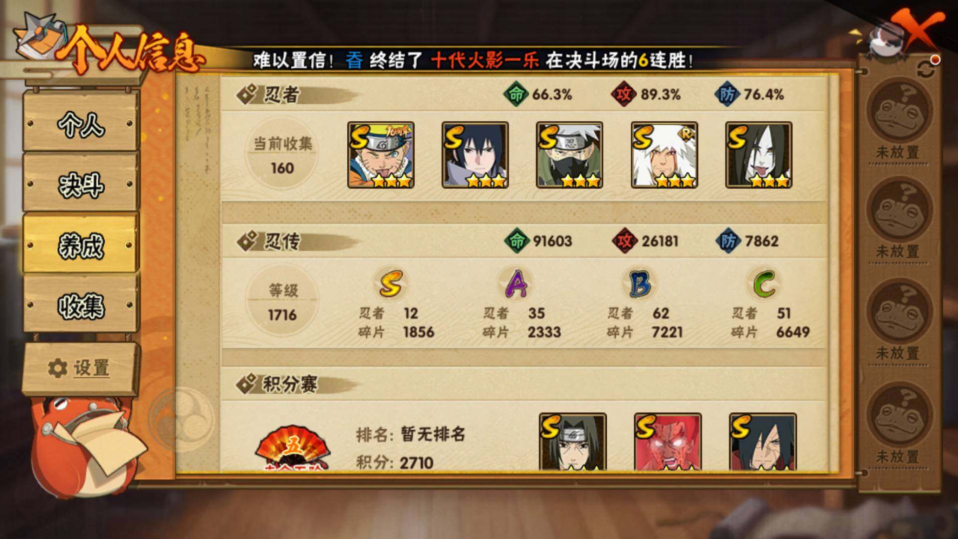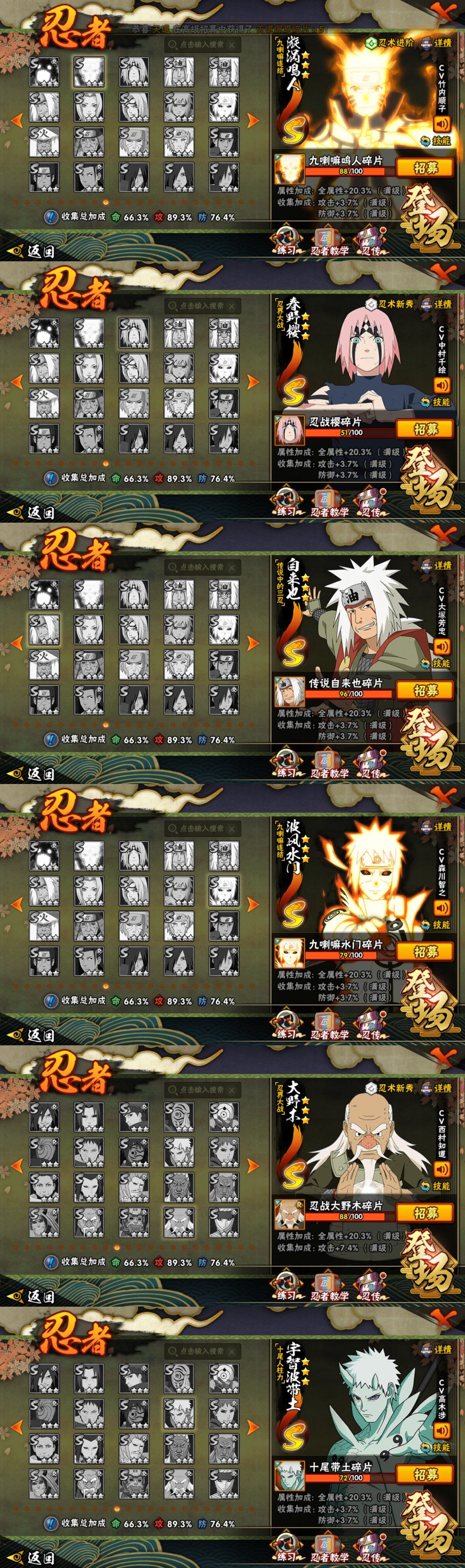 V7 12S 35A 681万战力 S碎片传说自来也96片 九鸣人88片 忍战