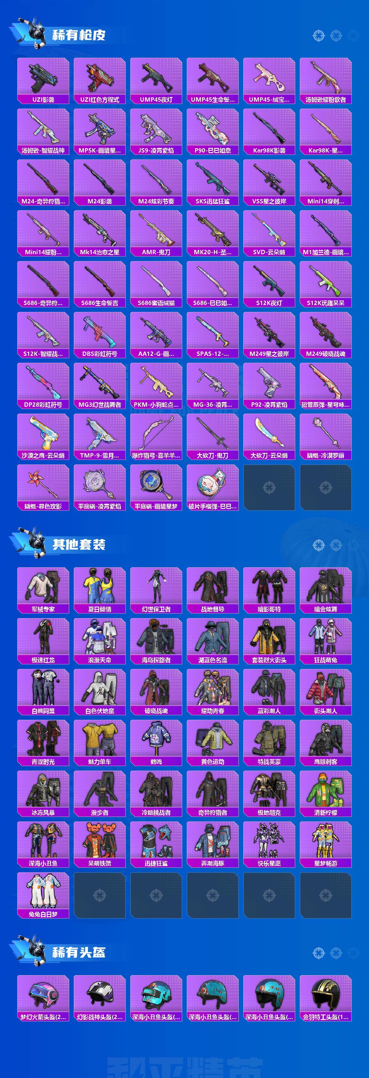 【粉色枪皮等级】:GROZA-镜光银凌(五级),AUG-星之彼岸(四级),AUG-暖羊咩咩(五级),UMP45-萌