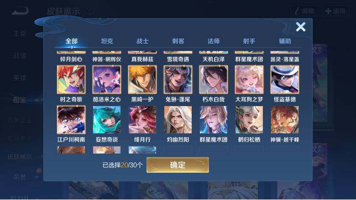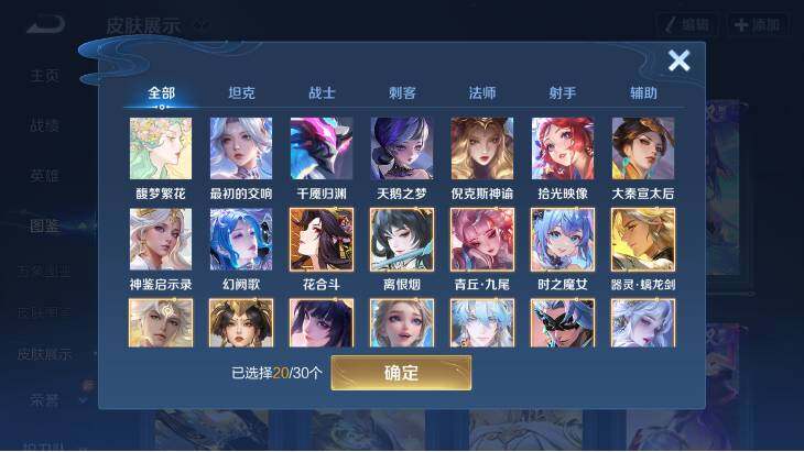 【英雄全皮】:廉颇全皮,小乔全皮,墨子全皮,妲己全皮,嬴政全皮,刘禅全皮,周瑜全皮,元歌全皮,甄姬全皮,宫本武藏全皮,马可波罗全皮,狄仁杰全皮,武则天全皮,司马懿全皮,露娜全皮,姜子牙全皮,刘邦全皮,孙权全皮,