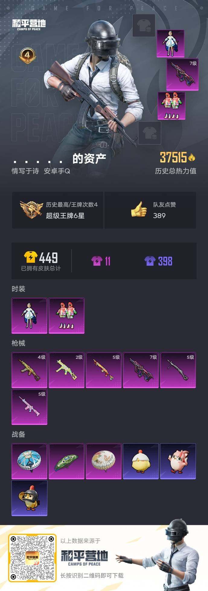 安卓 手Q-2粉装-6特效枪-0载具-0粉色飞行器-37515热力值-4王牌印记-92套装-132枪皮