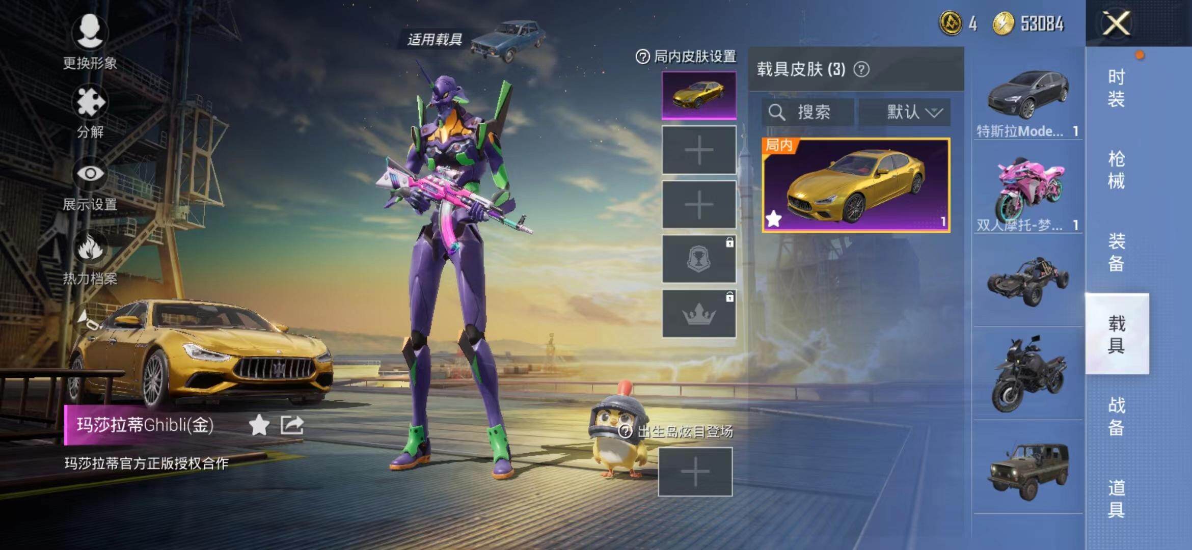 【稀有载具】:玛莎拉蒂Ghibli(金),特斯拉Model X(冷光银),双人摩托-梦幻火箭