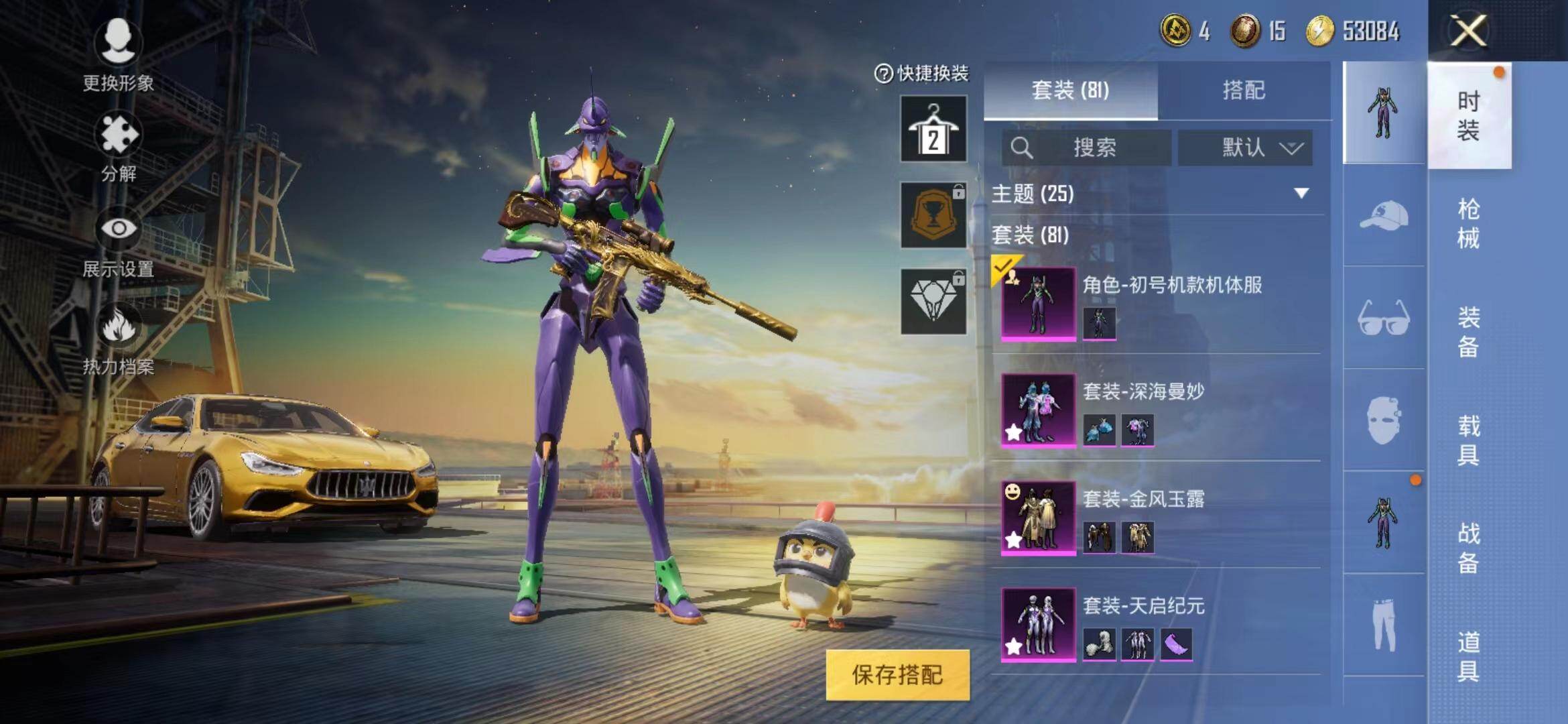 【优质套装】:角色-初号机款机体服,粉装-梦幻火箭,粉装-金曜白虎,粉装-快乐主宰,粉装-天启纪元,粉装-金风玉露,粉装-深海曼妙,粉装-浪漫波比,粉装-浪漫波比,粉