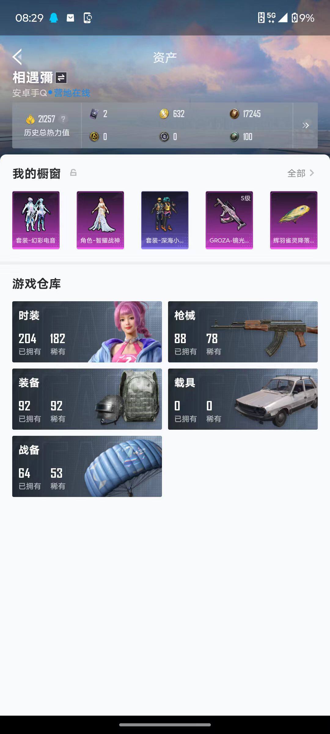 【商品标题】:安卓 手Q-2粉装-2特效枪-0载具-21257热力值-5印记-47套装-88枪皮