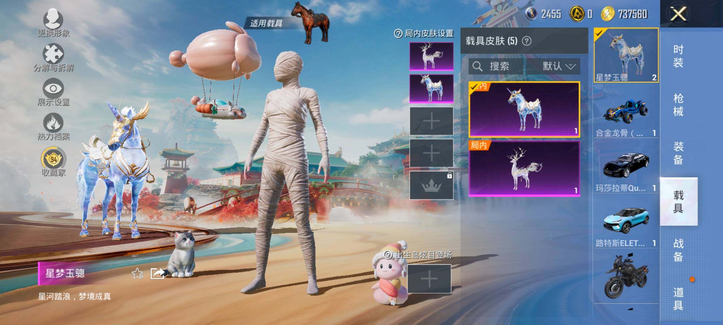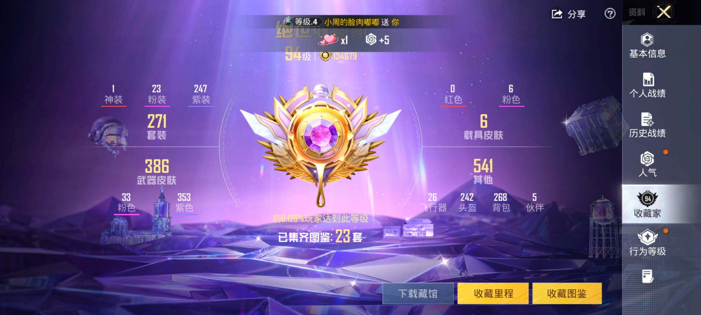 1红装7稀有6载具23粉装33特效枪29热门271套装407枪皮 19印记 历史无敌战神