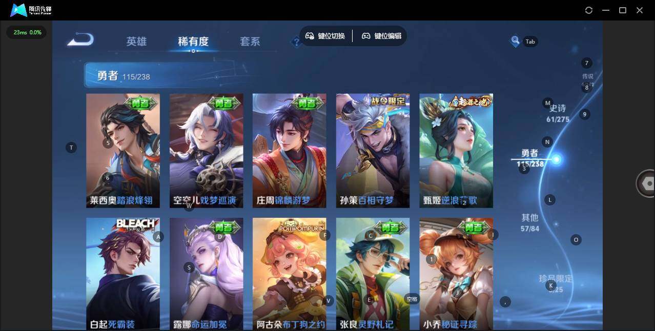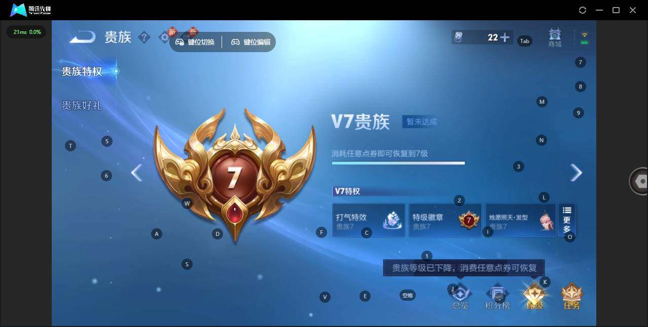 实名: 可修改 贵族等级: V7 英雄数: 127 皮肤数: 243 荣耀水晶