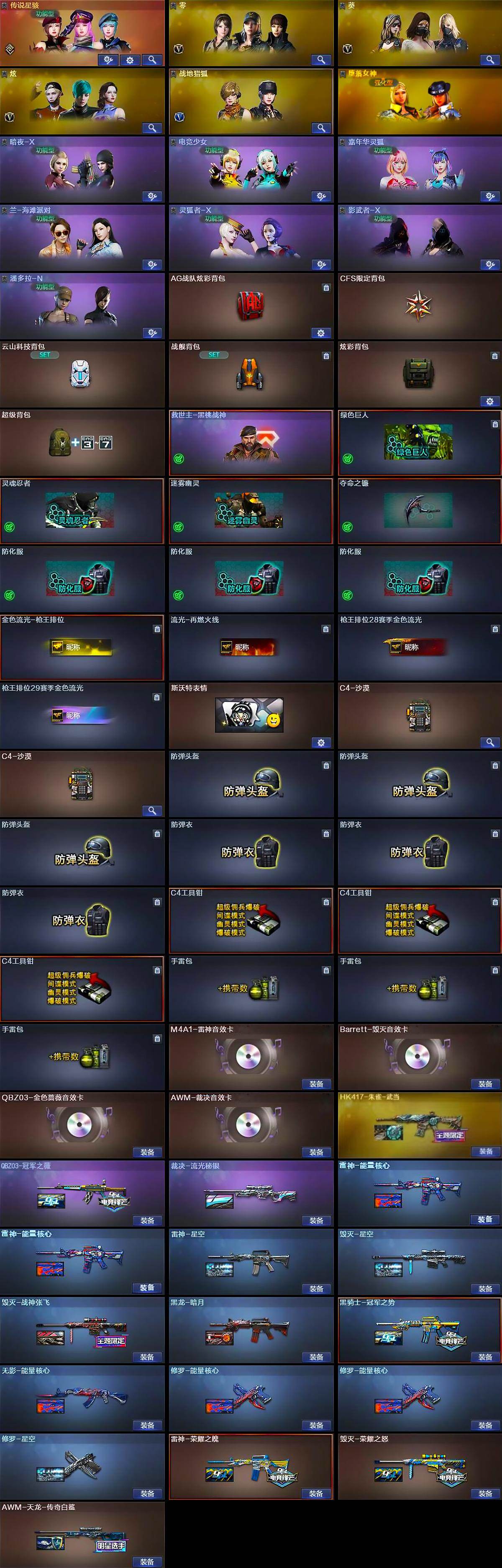 【热门武器】:QBZ03-金色蔷薇*2,HK417-朱雀,M200-幻神,死亡之眼,柯尔特-冠军之特,M4A1-黑骑士,汤姆逊-烈龙*4,RPK-盘龙,加特林-炼狱*3,降世魔童,沙鹰-修罗*6,Knife-冠军之刃