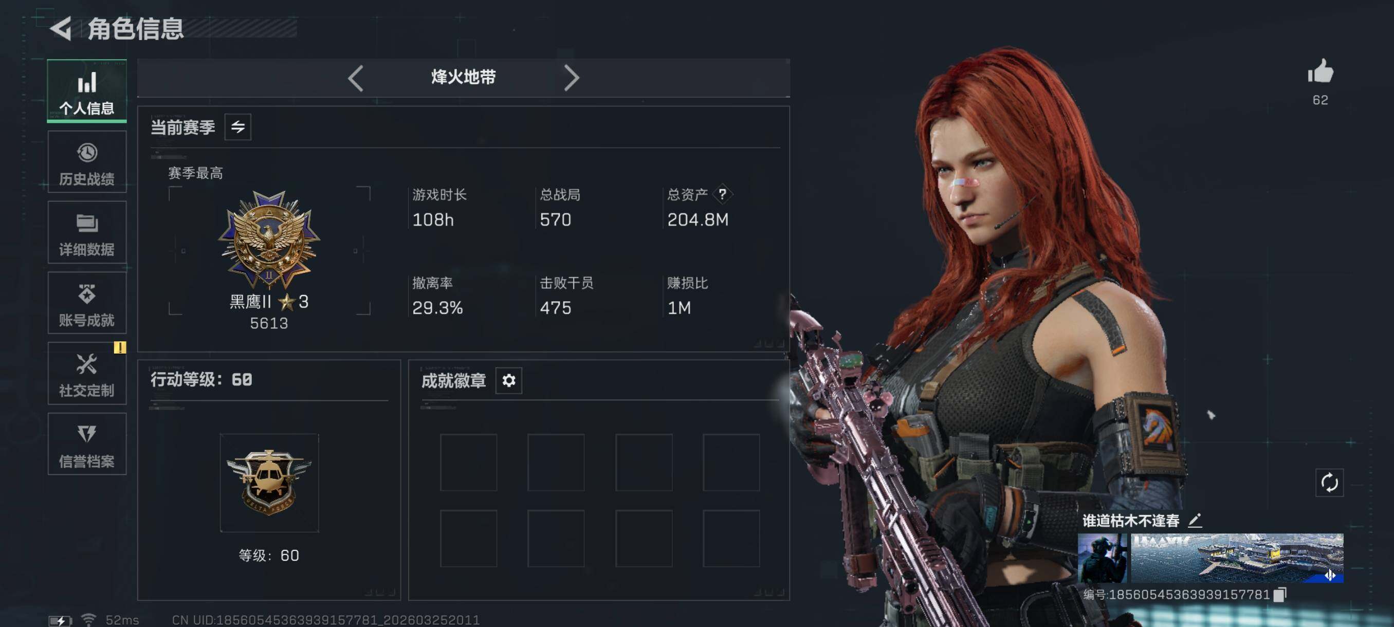 {特价出售}等级:60总资产:204.8M 纯币 刀皮 暗星 砖皮:优品s 巨浪 特勤处:仓库7,训练6,靶场4