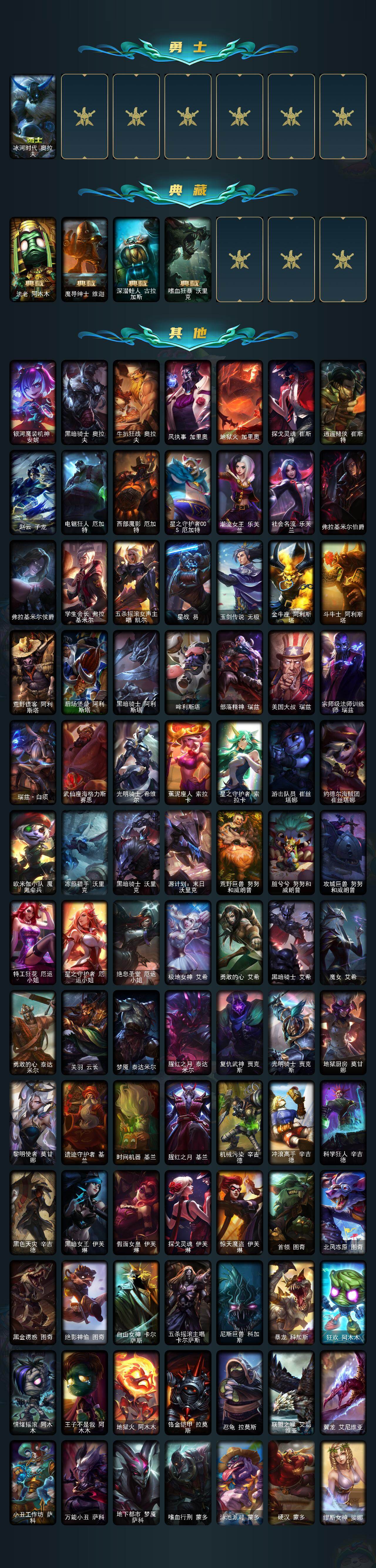 未定级段位-172英雄-669皮肤-92炫彩-3终极-12神话-114限定-64传说-182史诗