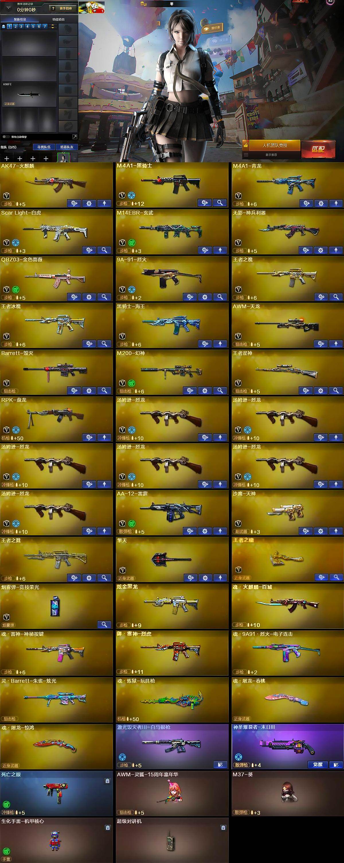 【热门武器】:QBZ03-金色蔷薇,M14EBR-玄武,Scar Light-白虎,M4A1-青龙,M200-幻神,死亡之眼,M4A1-黑骑士,汤姆逊-烈龙*6,RPK-盘龙