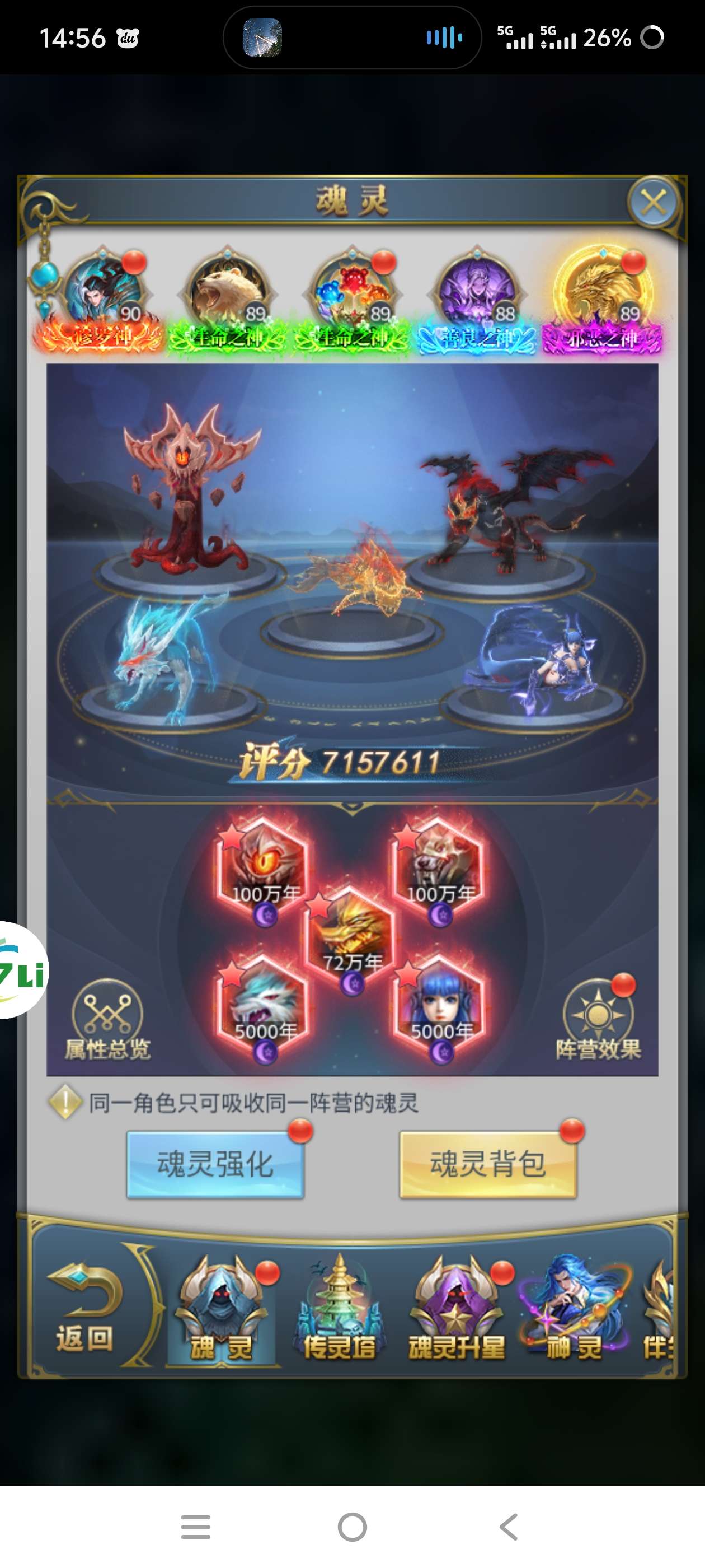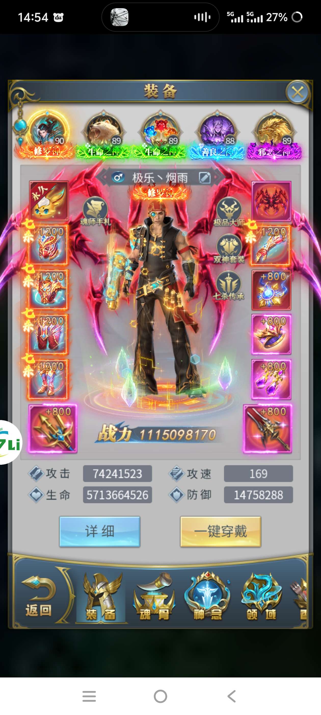七里天使极速11可换绑,自助3.5,四个四阶四套魂灵四套骨三套龙魂三套幻彩唐门,22百万,18红凶兽