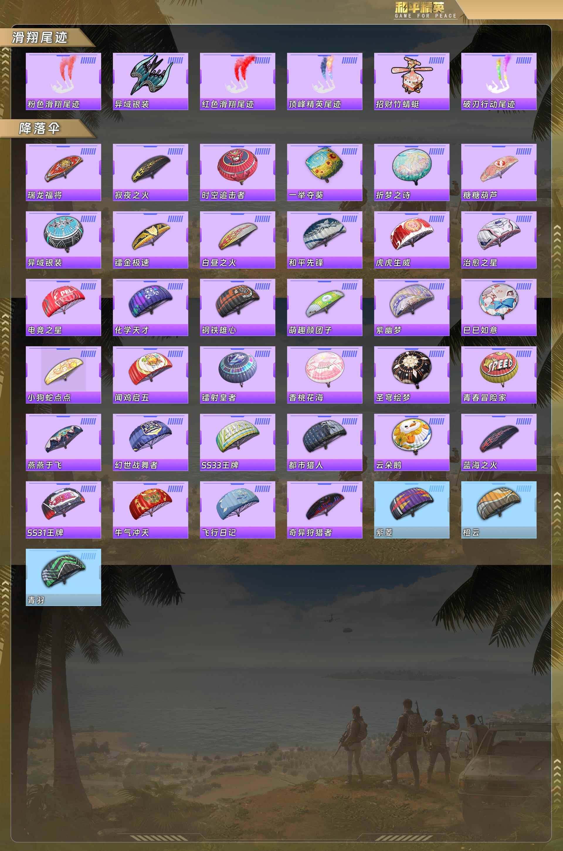 【粉色套装】:粉装-宝贝奶油派,粉装-天使彩虹糖,粉装-翡翠骑士,粉装-烈焰拳霸,粉装-薄荷物语,角色-千金淑猫,粉装-牡丹亭·游园,角色-脆鲨七海,角色-智耀战神,粉装-幻