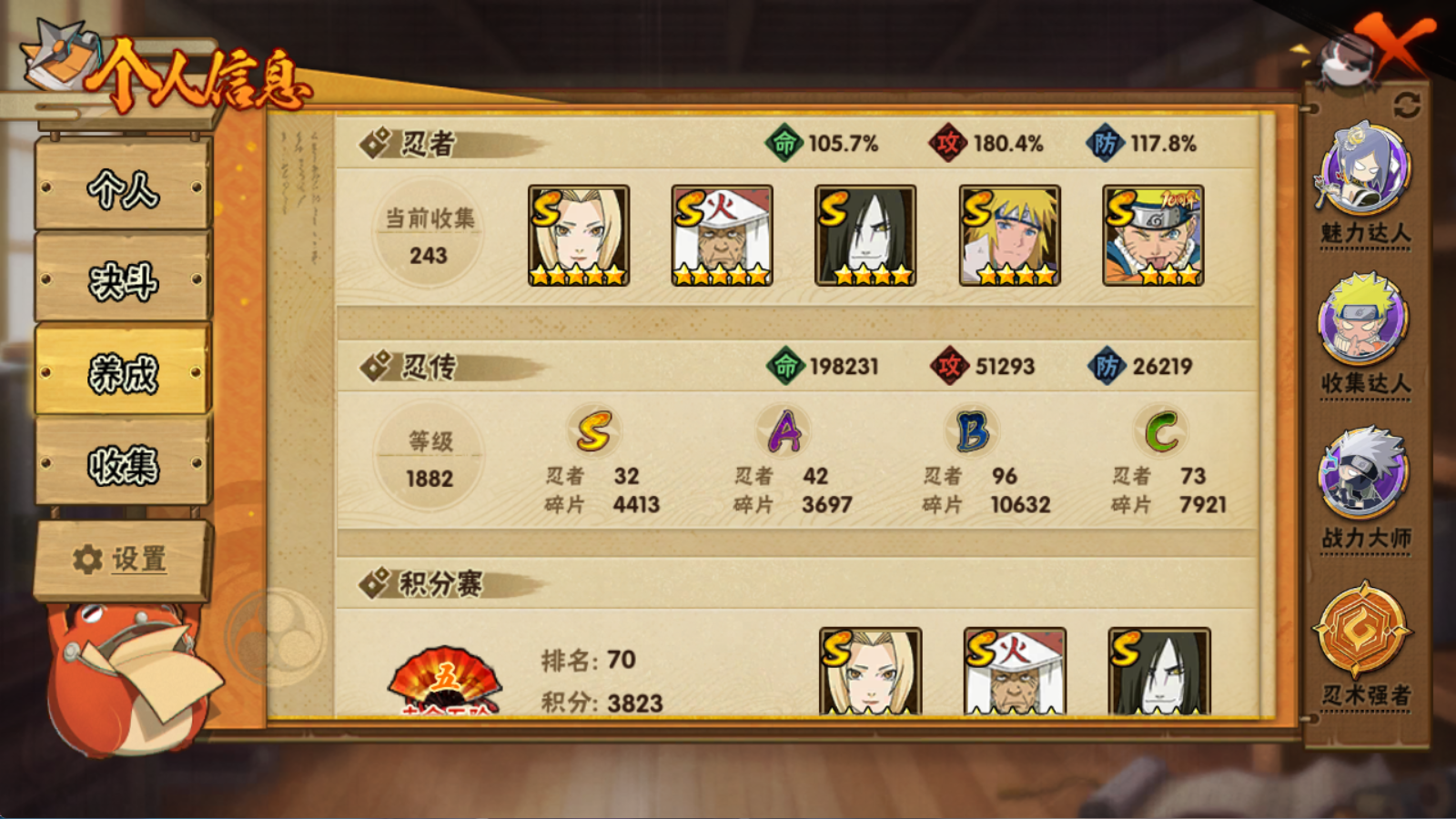本服榜51!1812W战力三代风创斑创柱32S+328祈愿晓