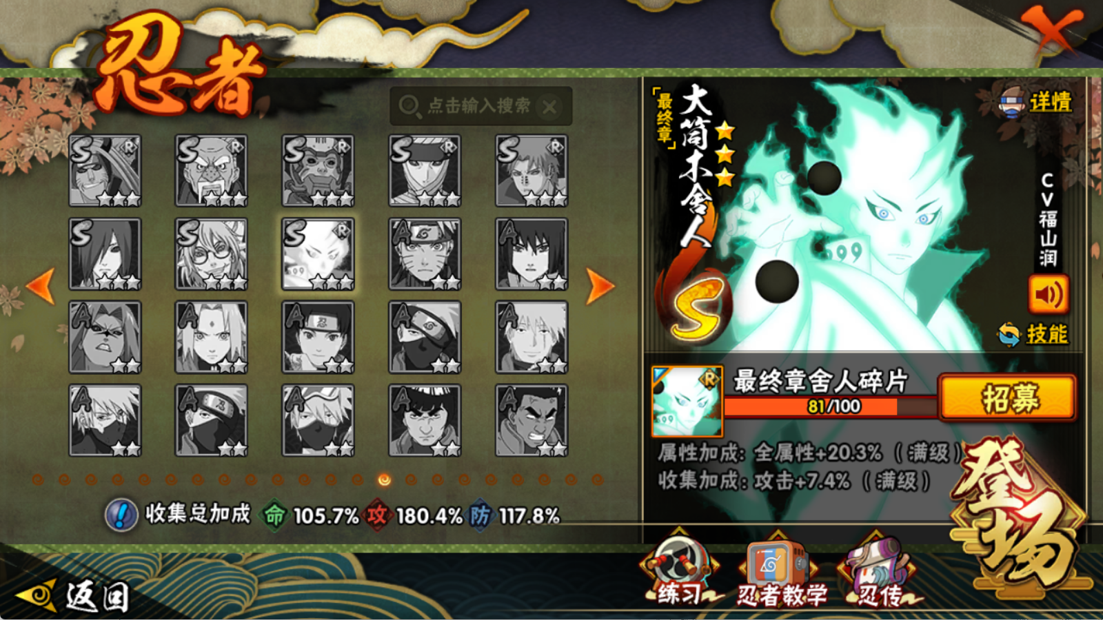 本服榜51!1812W战力 三代风 创斑 创柱32S+328祈愿晓创生蝎+侠隐佐助 面麻 顶针7个198直购42A+6直购通灵+雨隐主场景+1名片