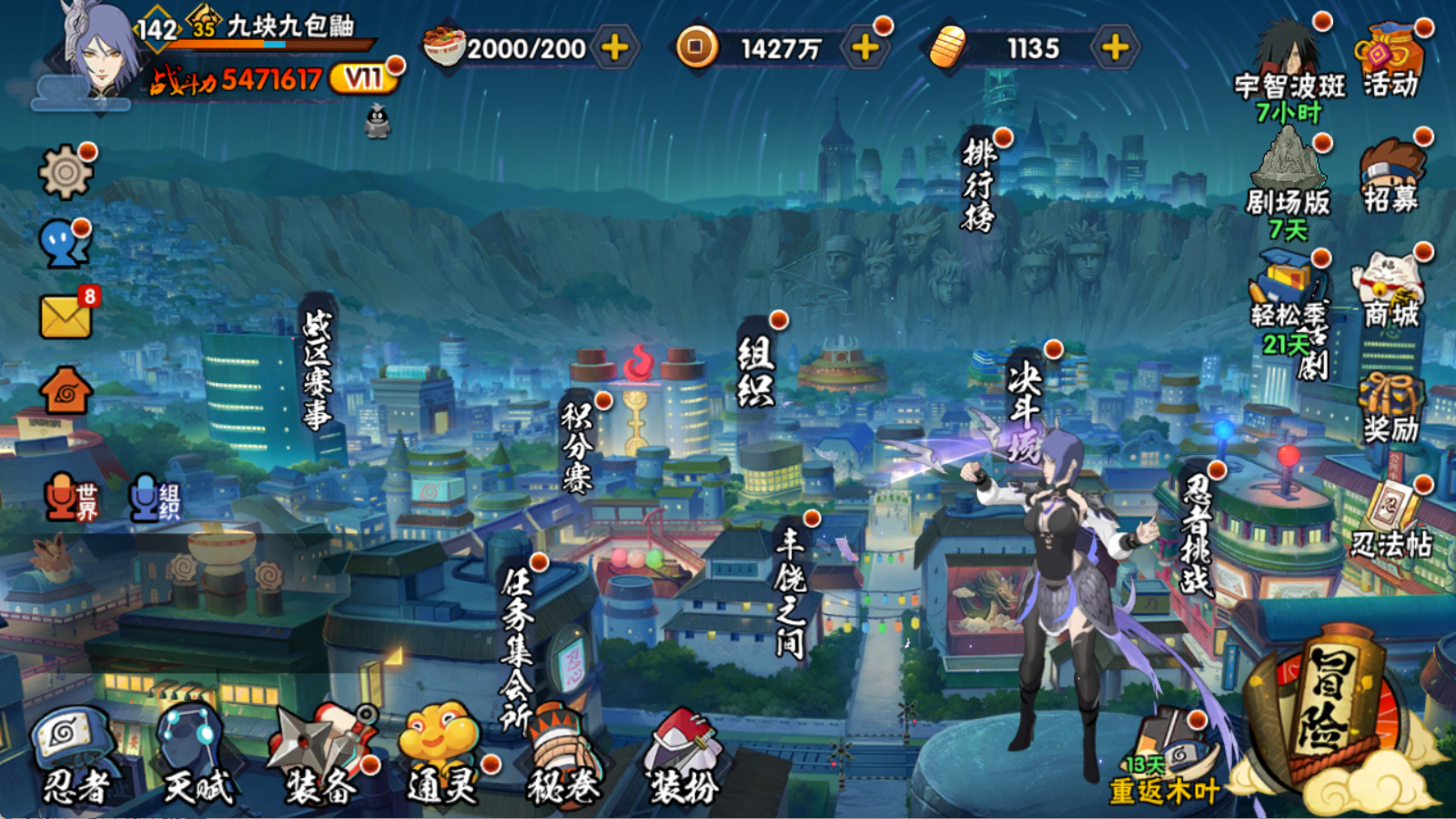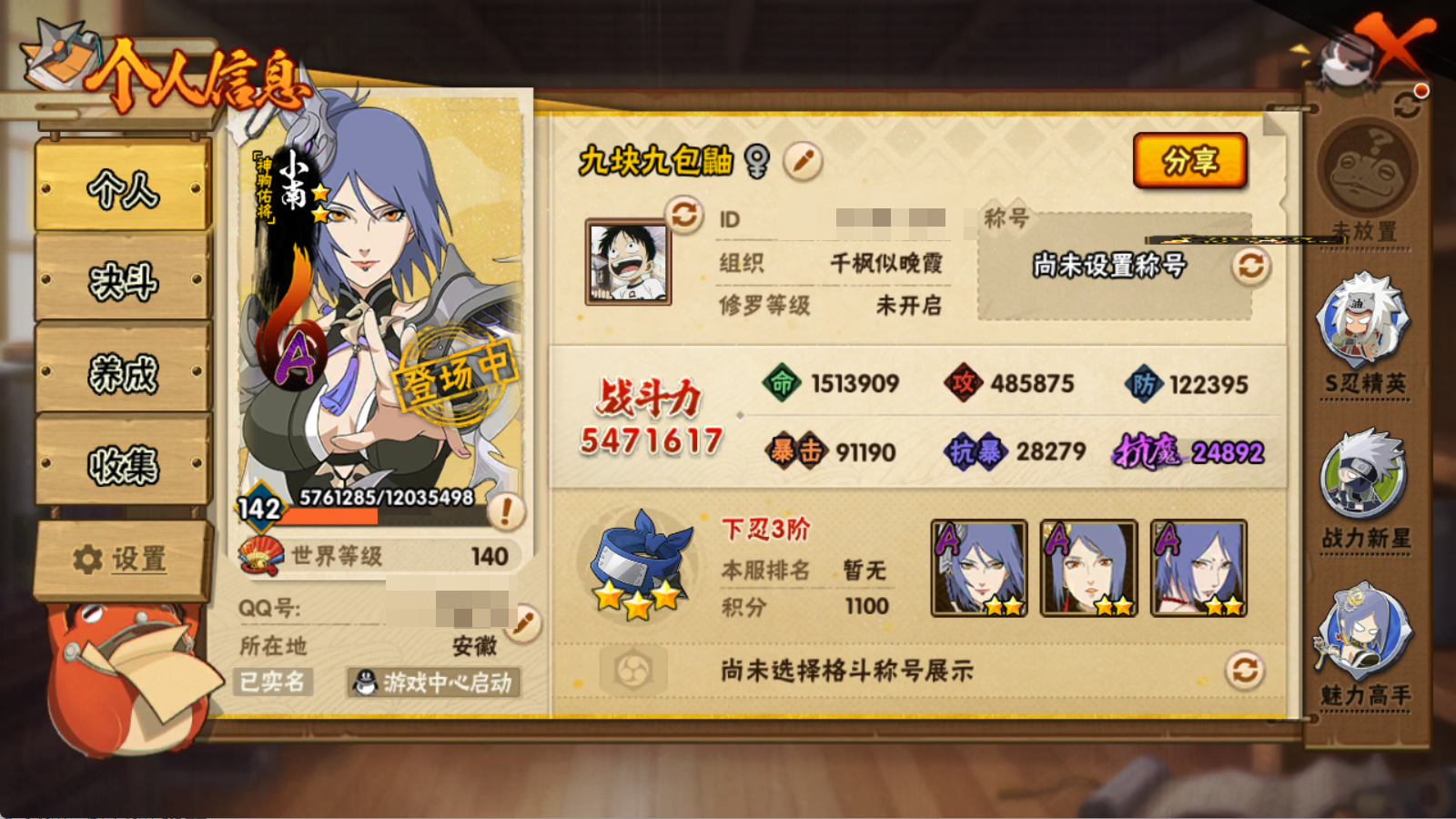 (可转苹果)547W战力 创柱 死水 红夜带土14S+顶针 漂泊小南8个198直购30A
