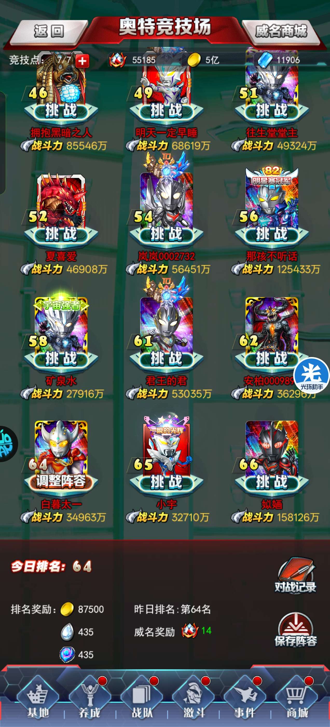 竞技场排名: