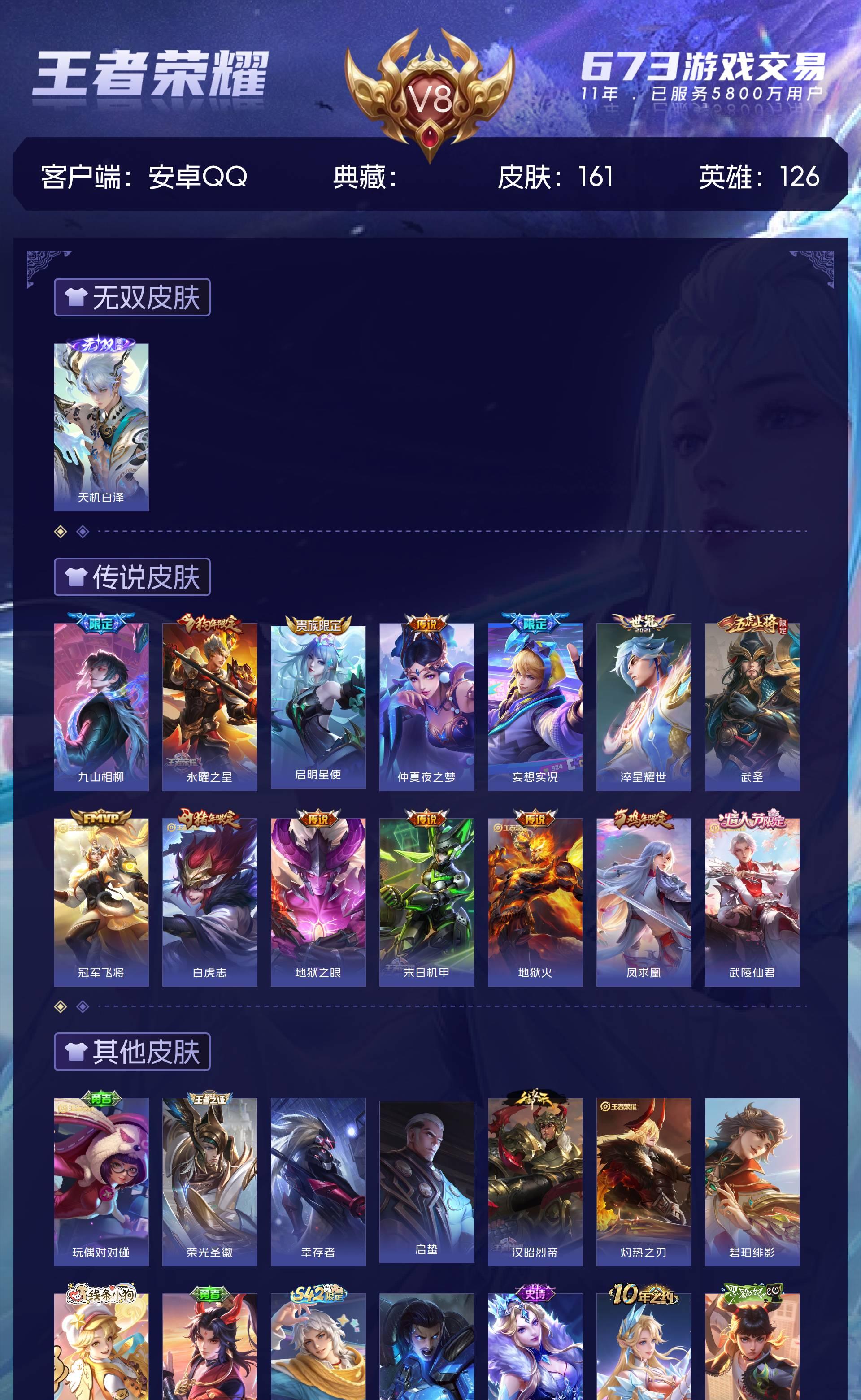 V8 皮肤161 英雄126 绝世王者 无双皮肤1 星传说3 传说14