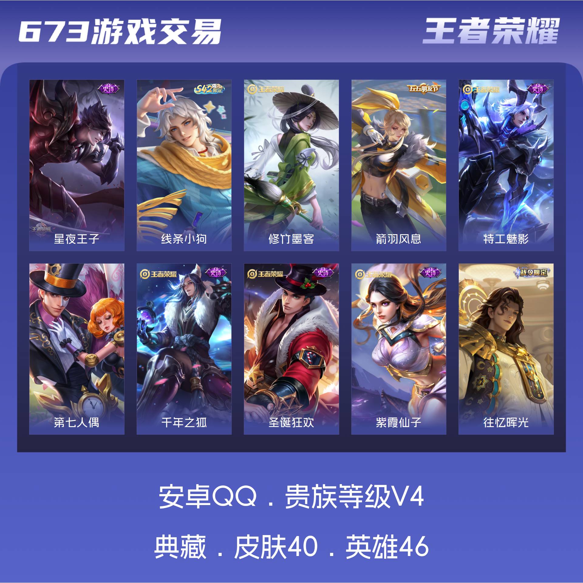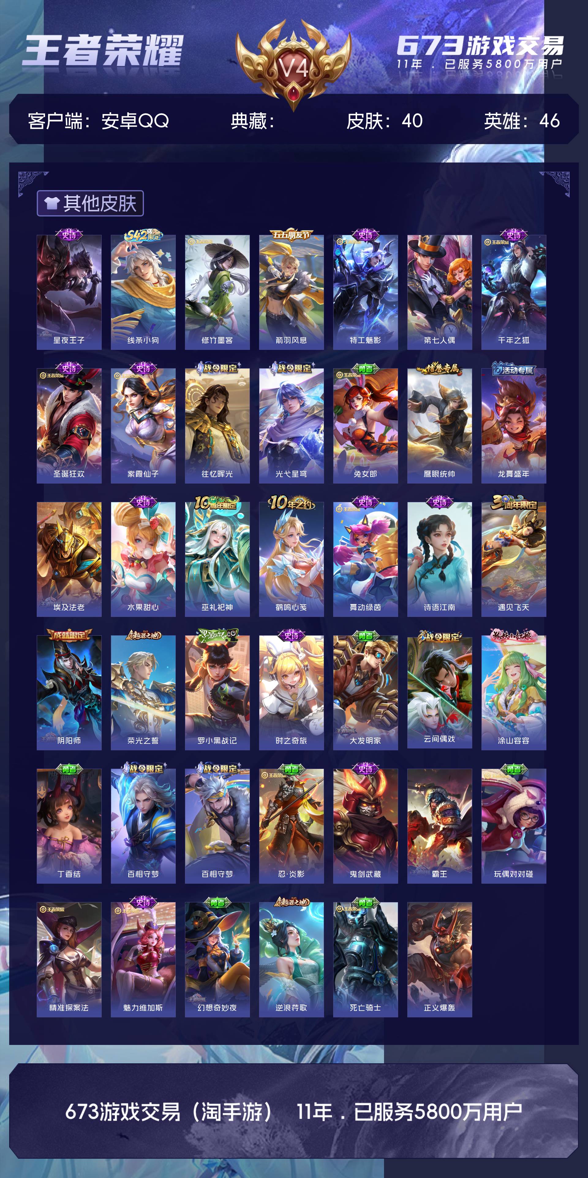V4 皮肤40 英雄46 至尊星耀