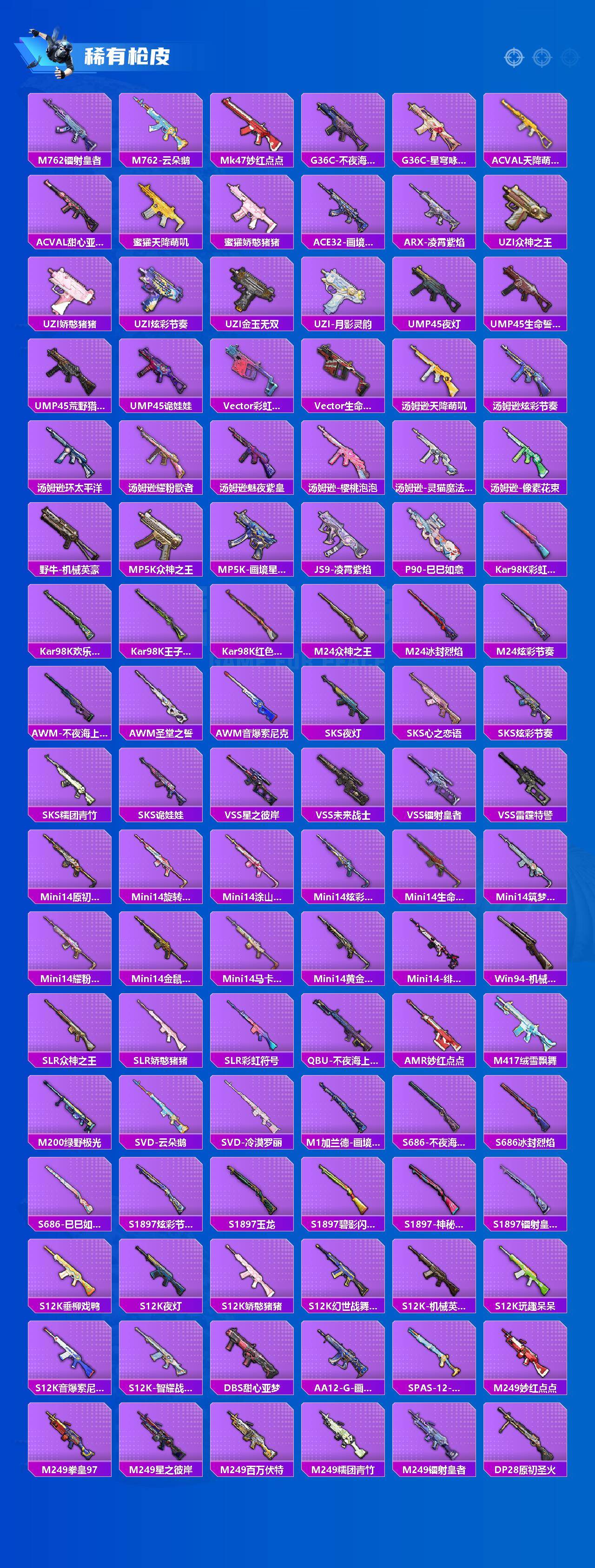 3粉装-8特效枪-1粉色飞行器-76396热力值-15王牌印记-196套装-274枪皮