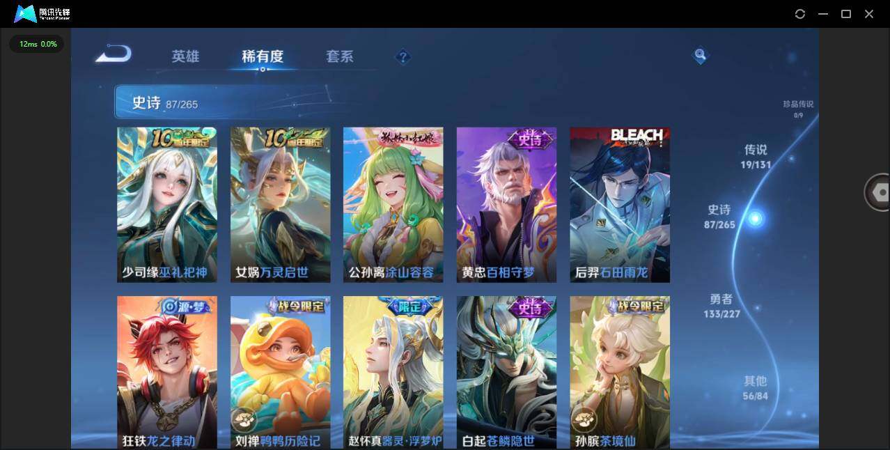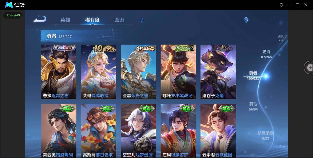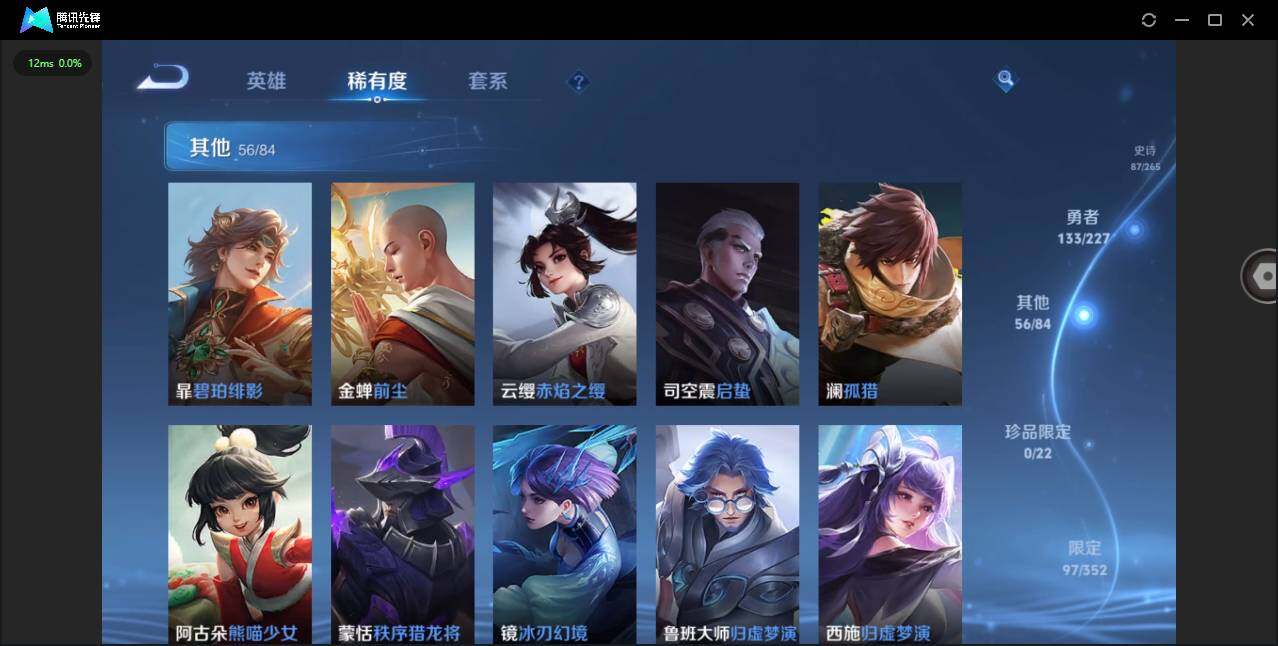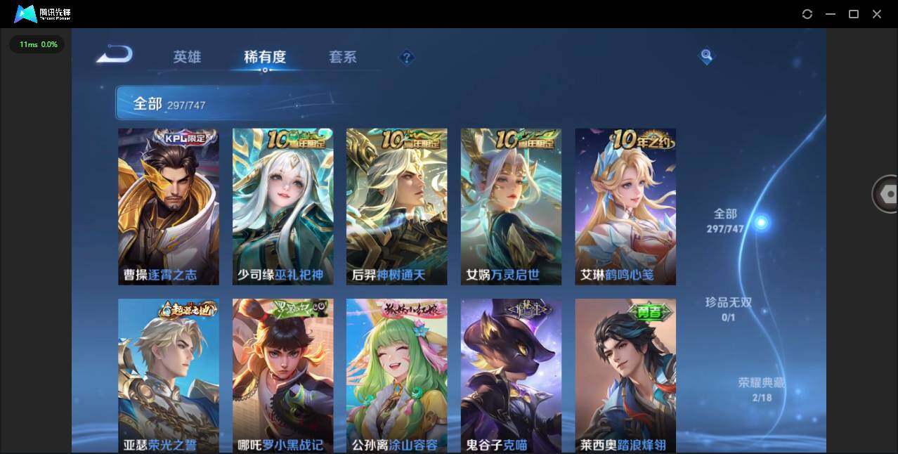 实名: 可修改 贵族等级: V8 英雄数: 127 皮肤数: 297