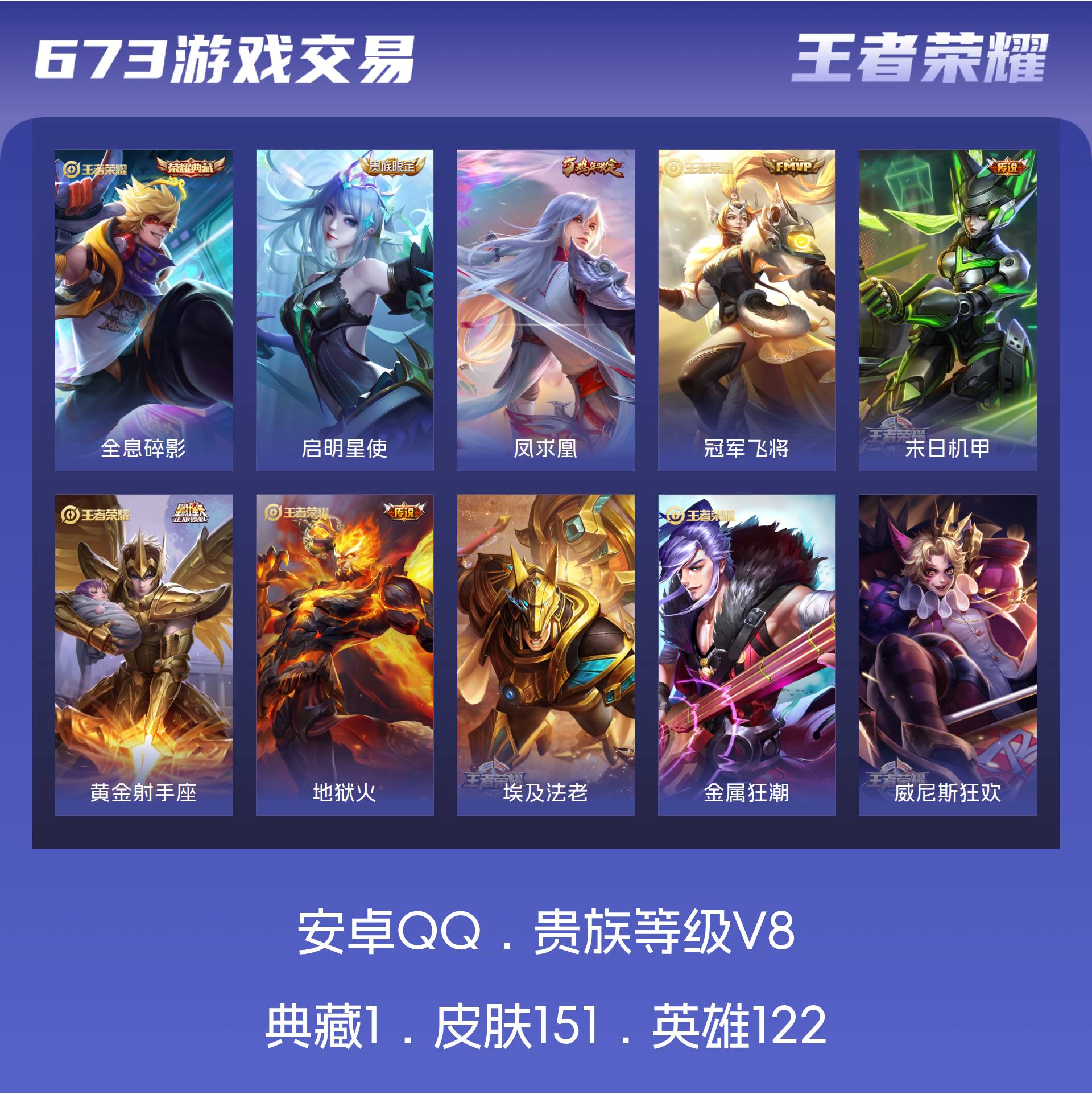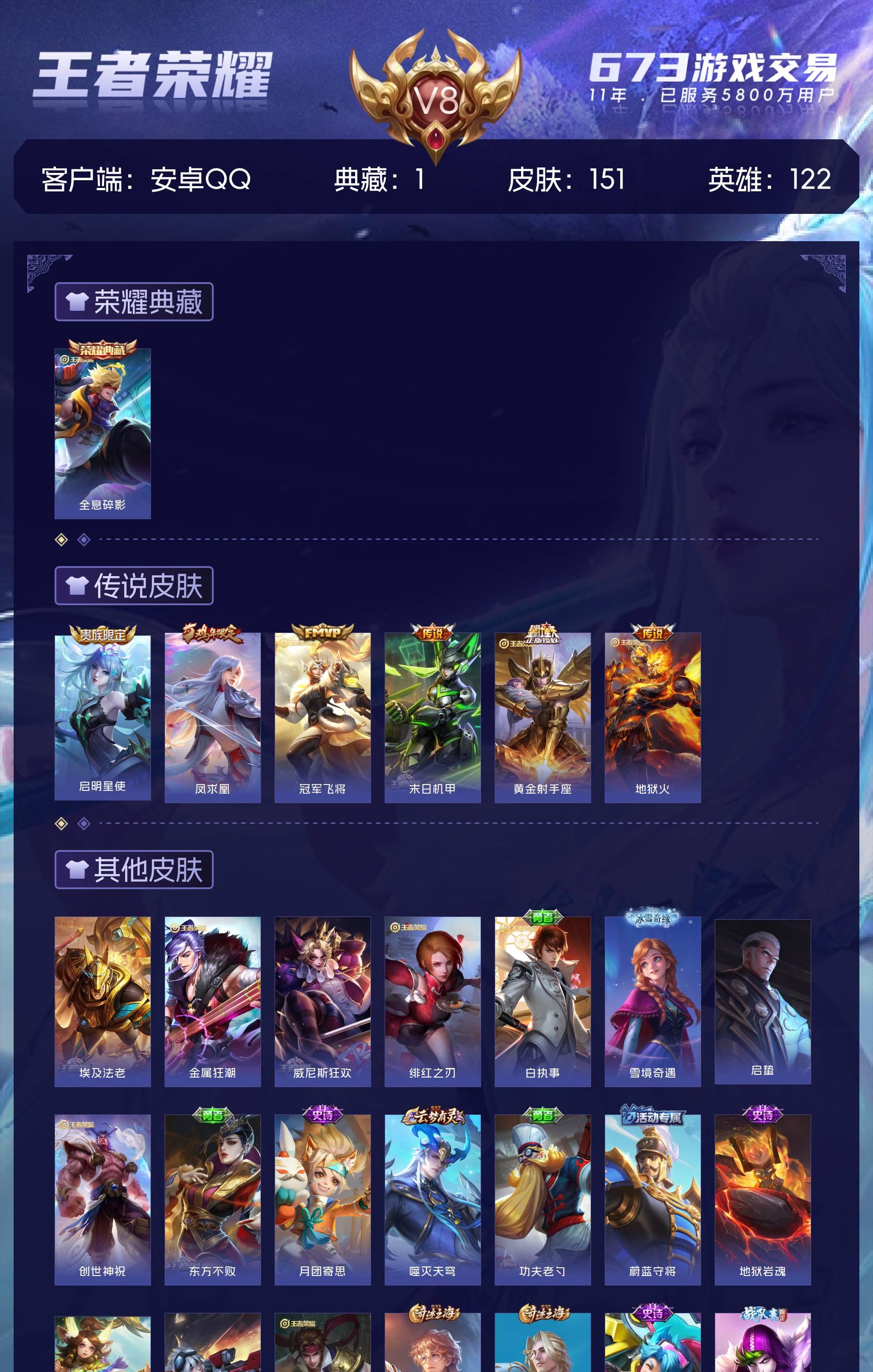 V8 皮肤151 英雄122 永恒钻石 荣耀典藏1 星传说1 传说6