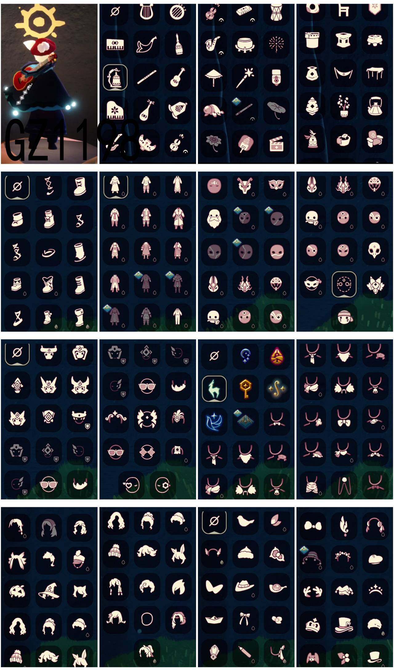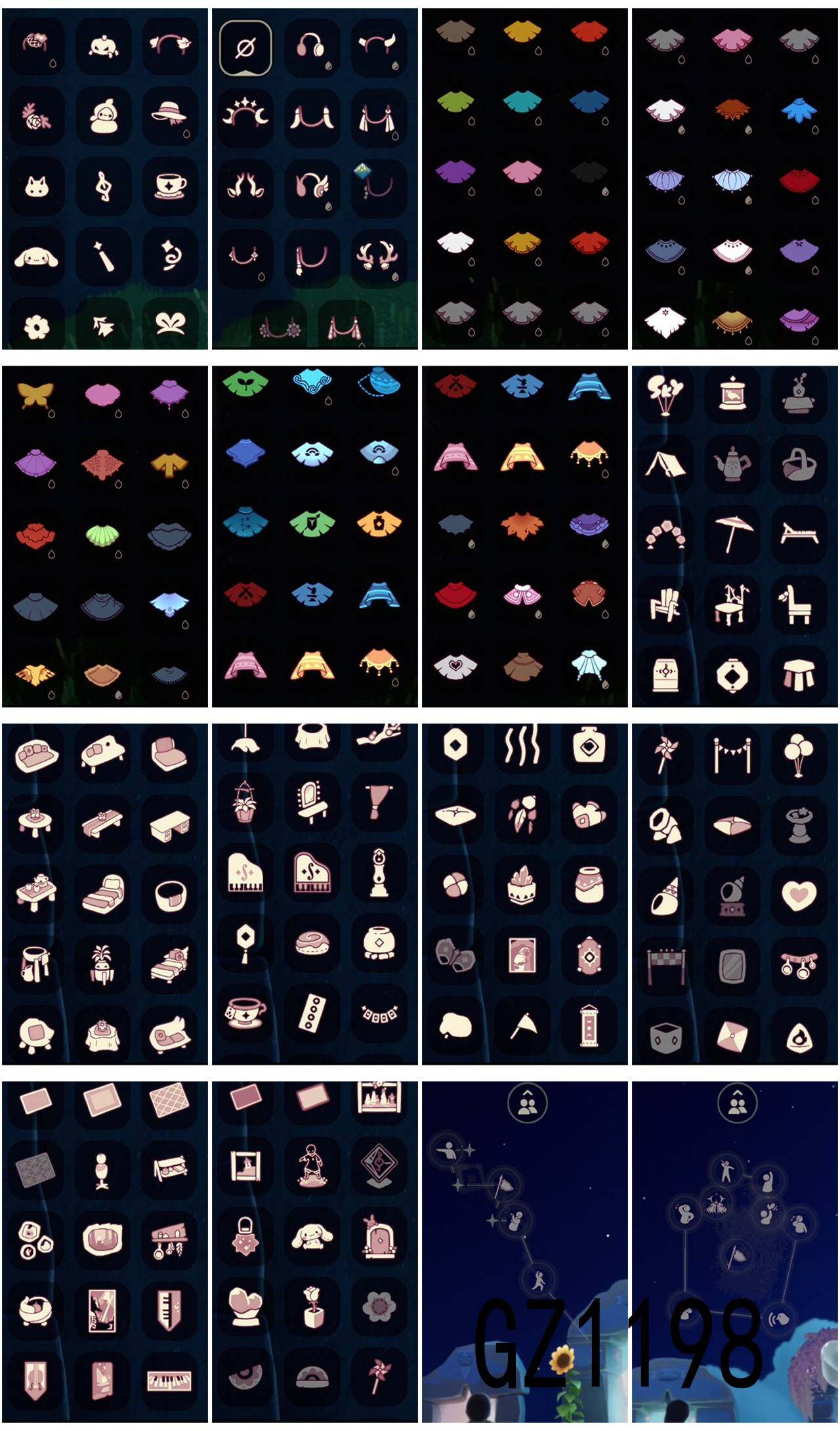 【毕业图】晨岛,云野,雨林,霞谷,暮土,禁阁 【毕业季】夜行季,归巢季,九色鹿,筑巢季,二重奏季,青鸟季 【蜡烛】2 【爱心】10 【稀有礼包】星月头冠,神鹿祝福礼包,圣诞鹿角,海蓝波浪发型,巫师帽,玉兔发饰,小狗周年头饰,迷你大耳狗发饰,四叶草头饰,欧若拉之翼,周年线框斗篷,蝙蝠斗,绊爱礼包,大耳狗抱枕,树精肩饰礼包,姆妈手作斗篷礼包,仙境茶