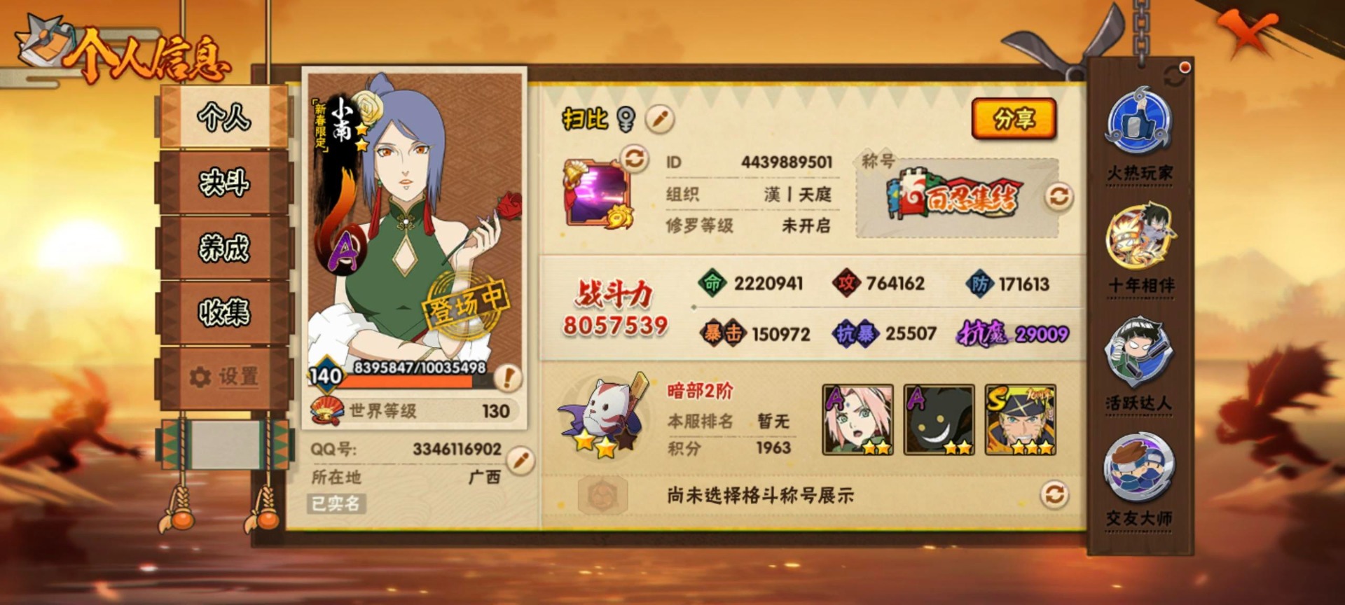 V11 12S忍 39A忍 17通灵 805.7W战力 可二次 可修改实名