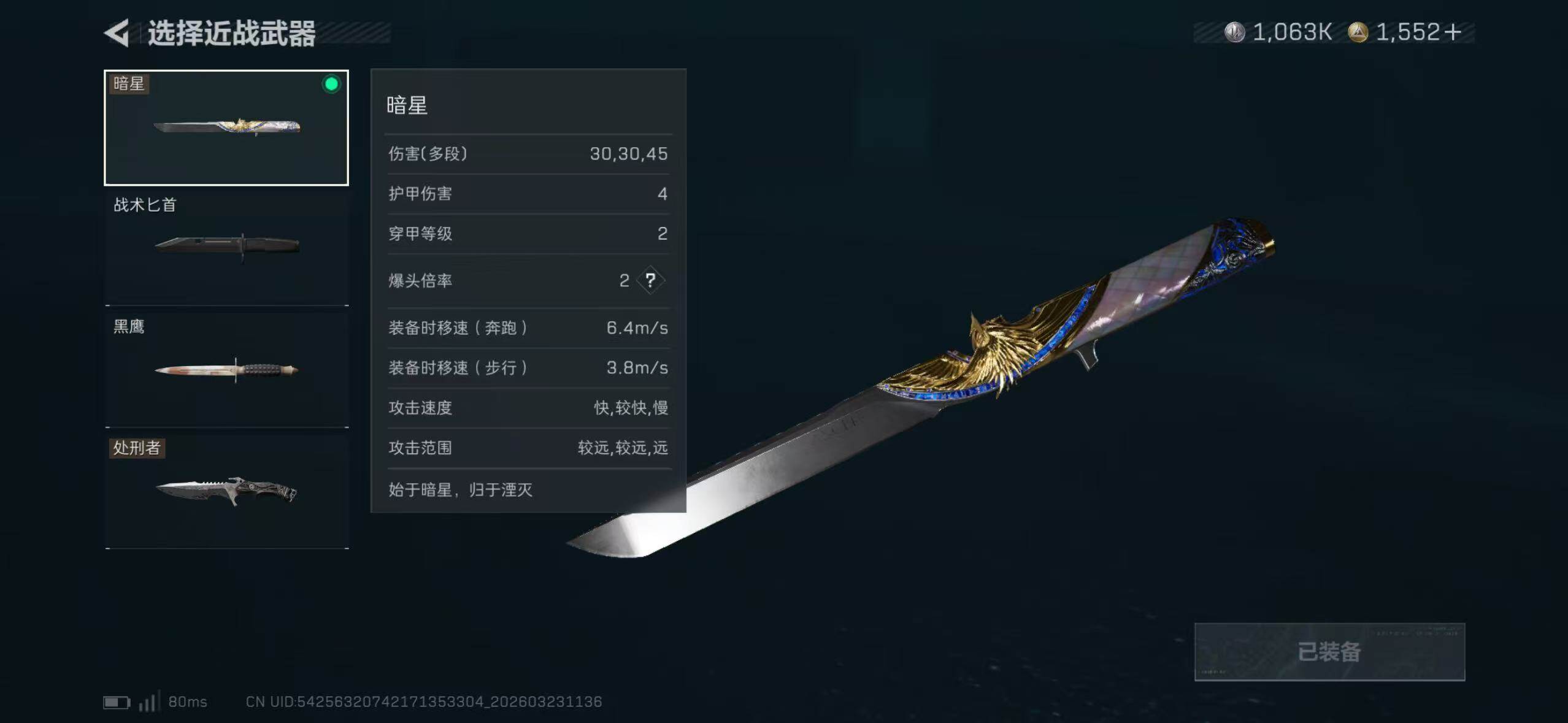 【近战皮肤】:近战-暗星,近战-处刑者1级,近战-黑鹰