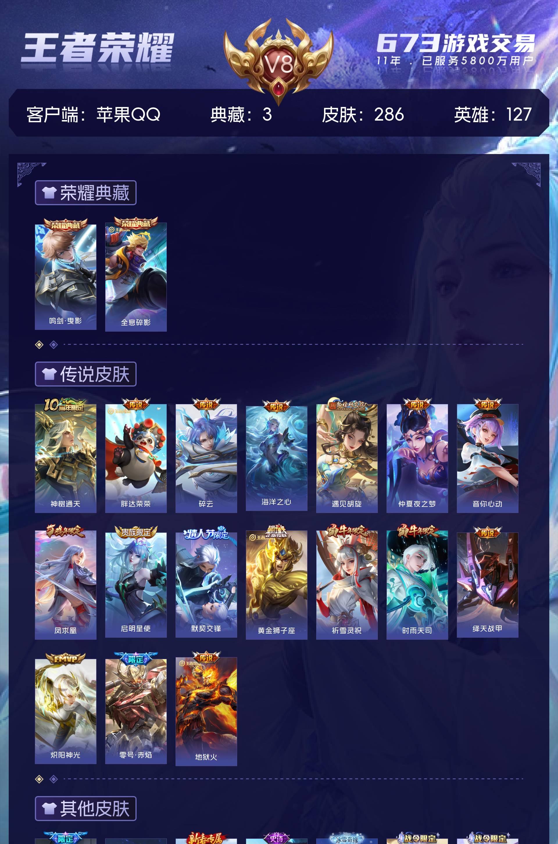 V8 皮肤286 英雄127 尊贵铂金 荣耀典藏3 传说18