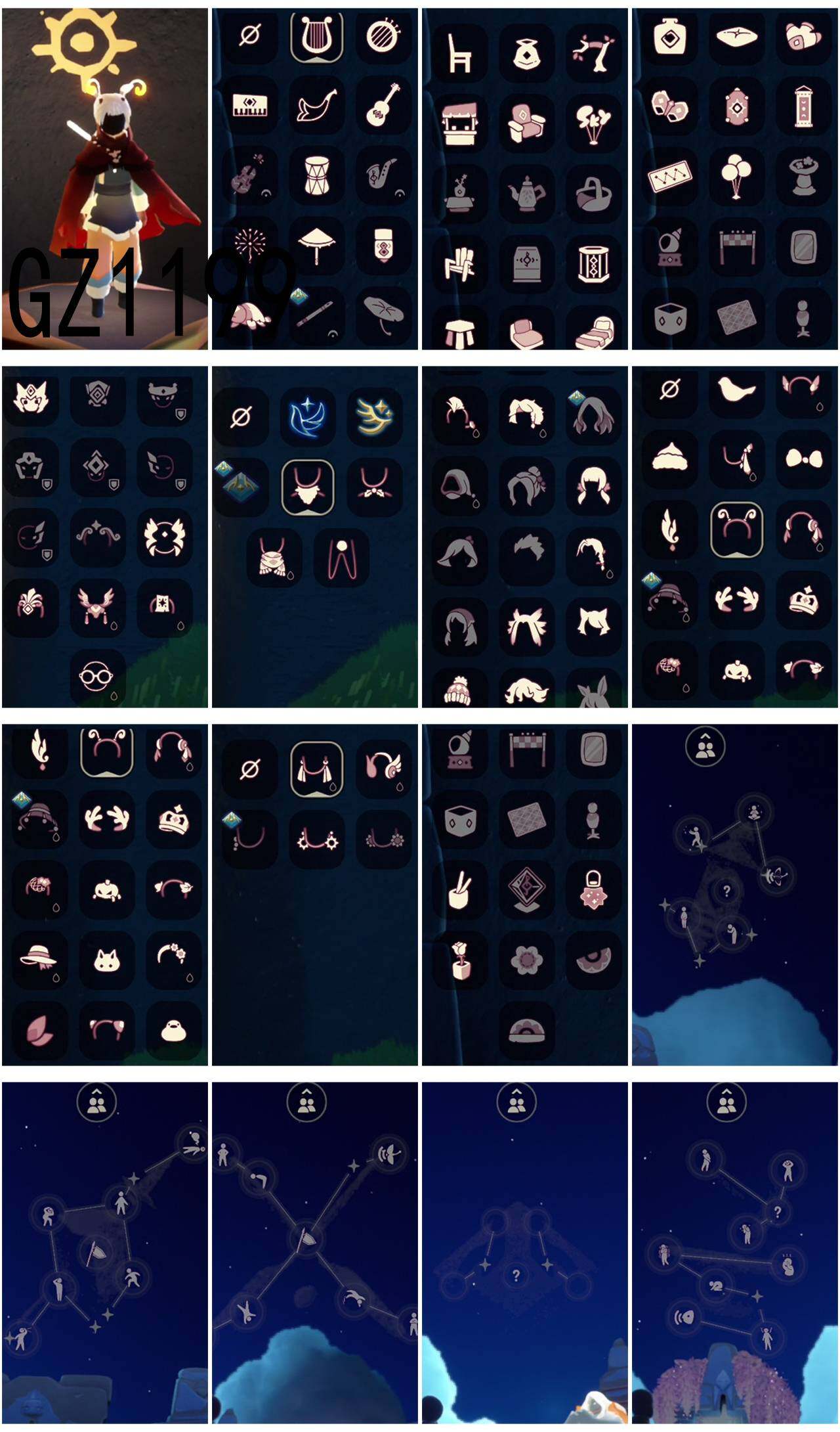 【毕业图】晨岛,霞谷,暮土 【毕业季】青鸟季,迁徙季 【蜡烛】17 【爱心】28 【稀有礼包】彩虹武士裤,兔子拖鞋,玉兔发饰,日光耳环,粽子发饰,小黄鸭发饰 【毕业物品】青鸟斗篷,青鸟面饰,蓝色毛绒绒鞋,蓝色毛绒裤子,海牛鹿角头饰 【热门复刻】绿芽,虚荣,正太头,猫猫头,花环长发,平顶帽,雨伞,黑金斗篷,黄鼠狼面具,疯帽匠发型,樱花发型