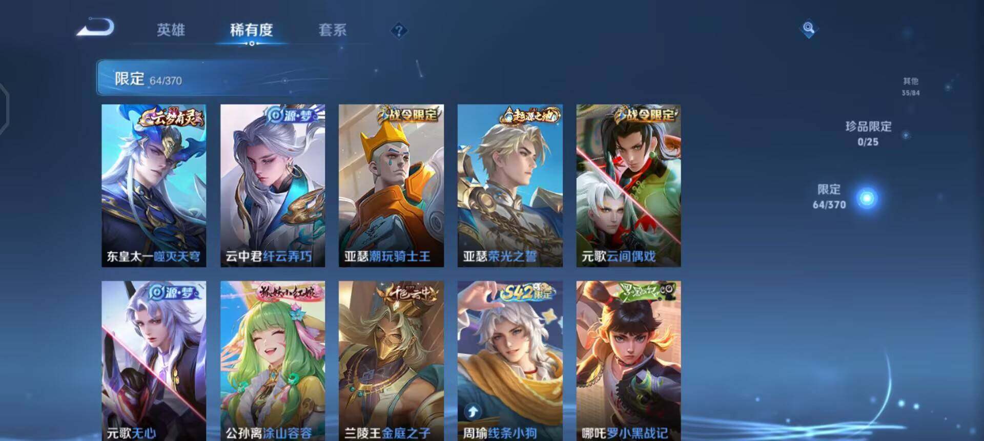 V6-永恒钻石V段位-128英雄-229皮肤-1典藏皮肤-7传说-61史诗 【英雄全皮】:敖隐全皮