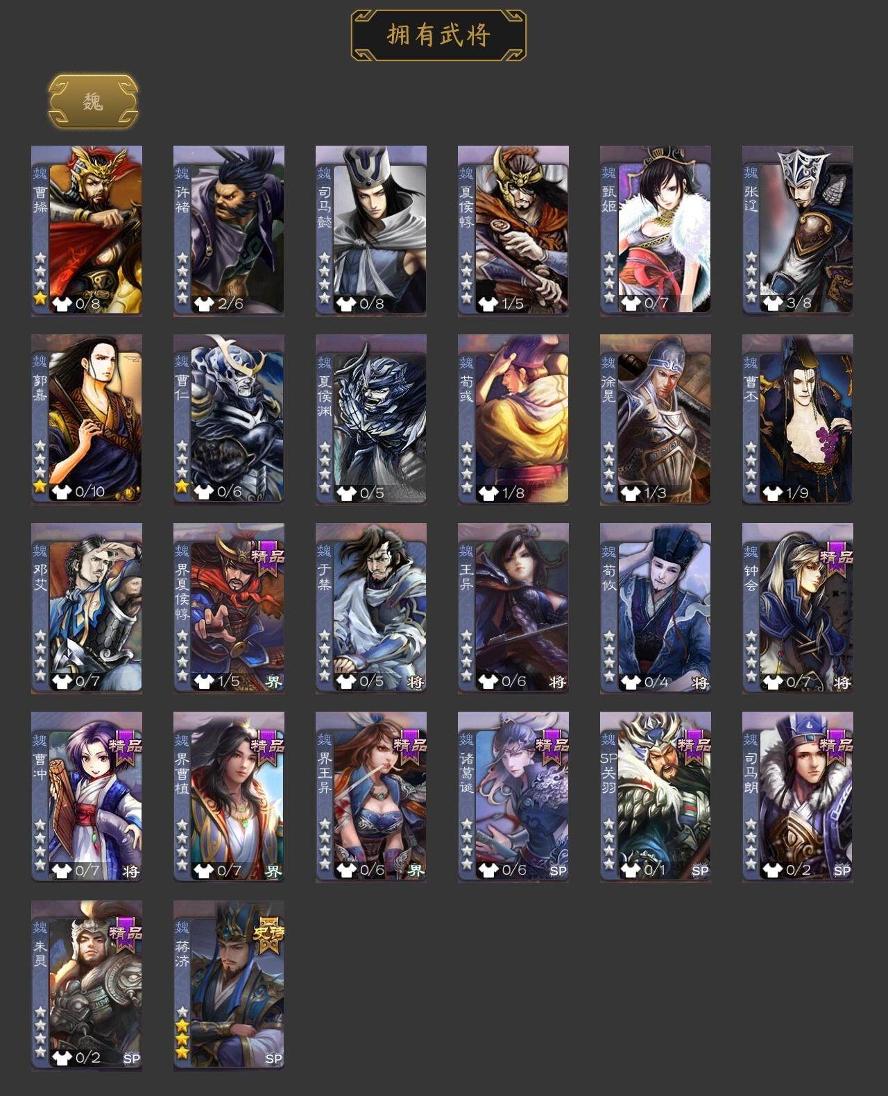 蒋济,笮融,SP关羽,诸葛诞,朱灵,钟会,曹冲,界王异,界夏侯惇,司马朗,界曹植,势陈到,界马岱,刘封,界刘备,界赵云,界马超,界简雍,韩当,界黄盖,孙鲁班,界韩当,孙邵,张布,友庞统,伏完