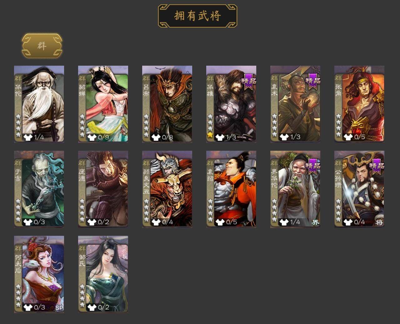 傅佥,曹昂,朱灵,界曹操,界司马懿,界张辽,界甄姬,SP孙尚香,夏侯霸,廖化,关平,界刘备,SP徐庶,程普,界甘宁,界黄盖,界周瑜,界大乔,界陆逊,孙鲁班,界朱治,华雄,袁术,界华佗,公孙瓒