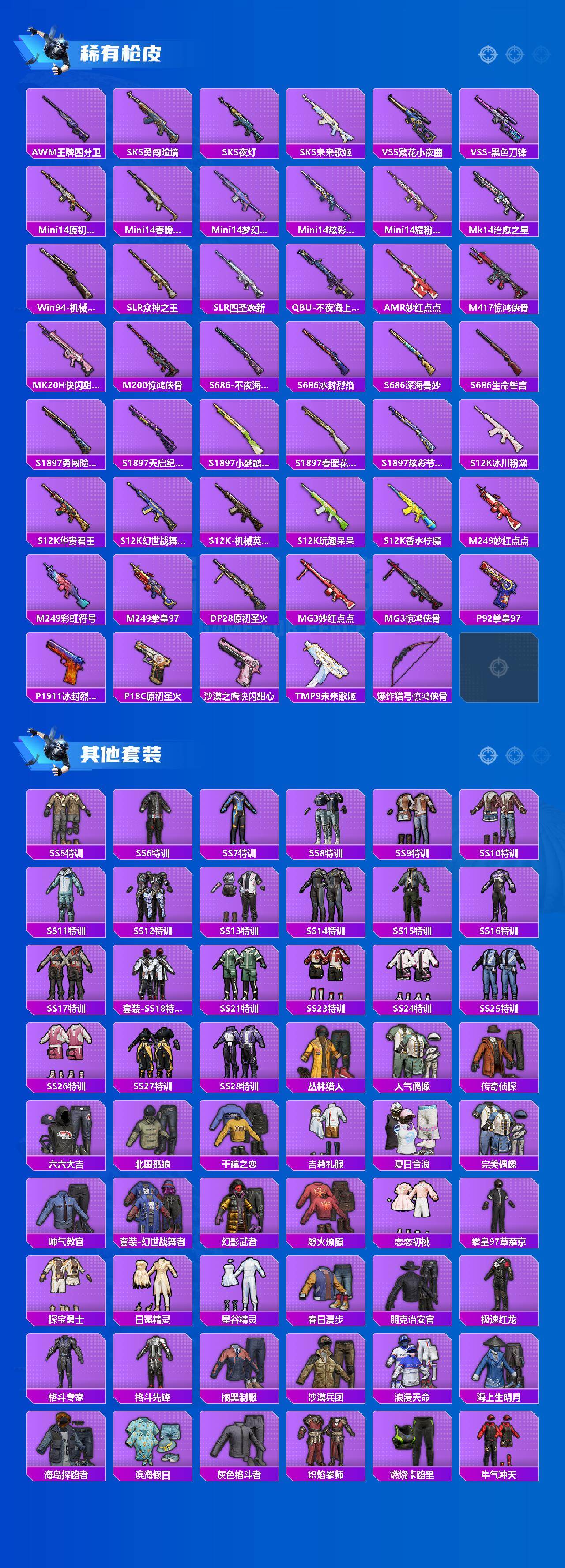 【粉色枪皮等级】:AKM-炫紫旋律(七级),M416-心之恋语(七级),M762-激战未来(七级),Kar98K-巳巳如意(一级)
